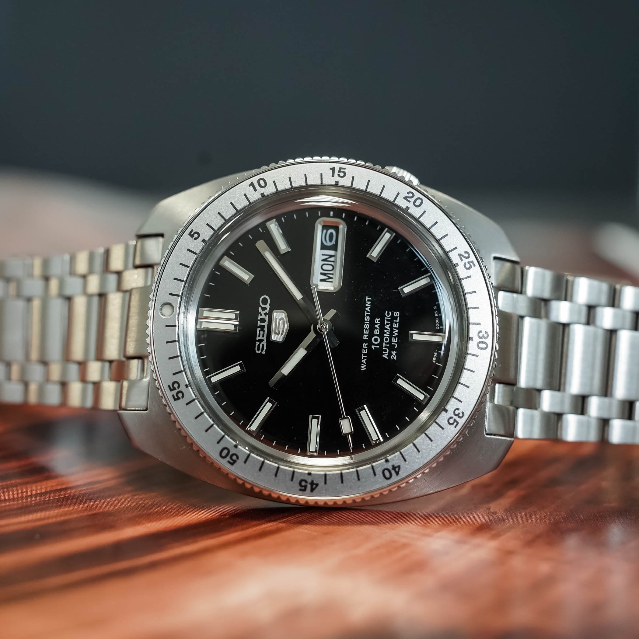 An early Seiko 5 Sports design, also known as the Gene Kranz, revived in 2025.