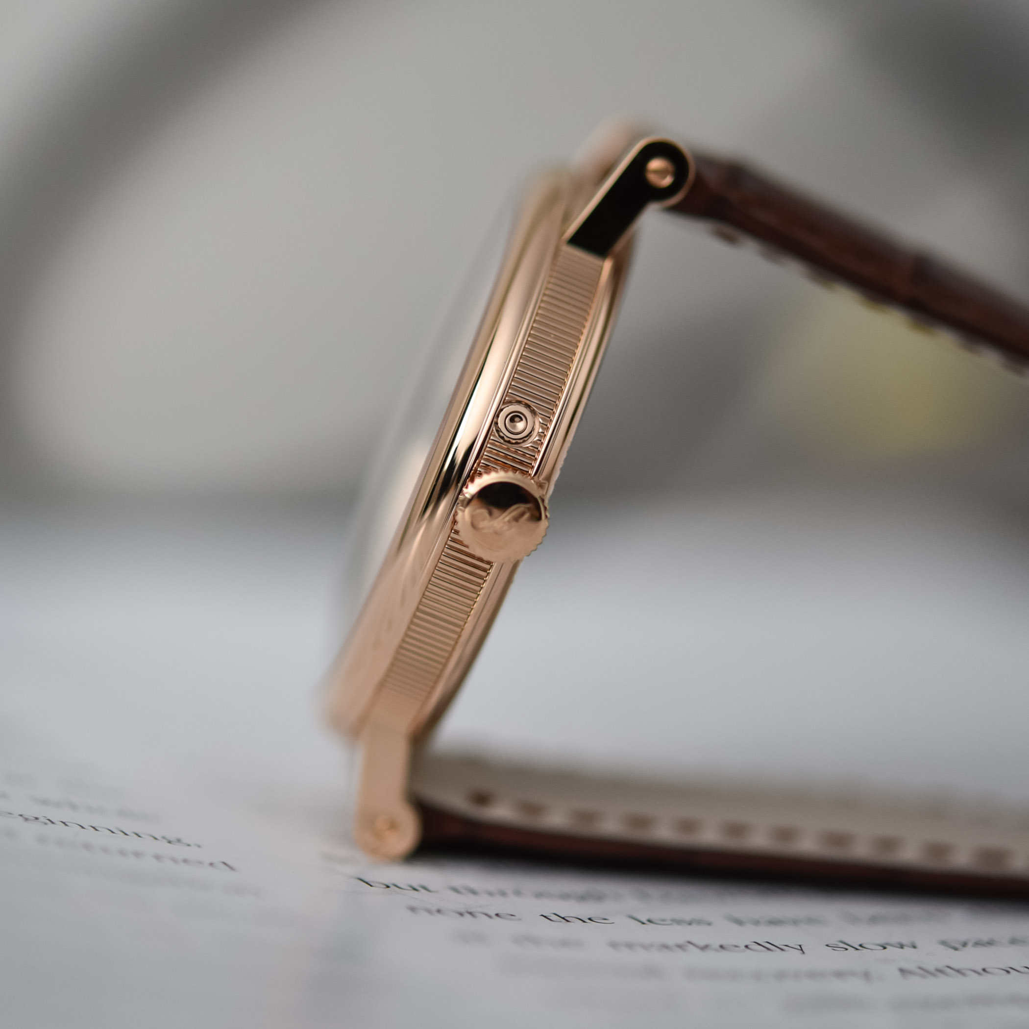 Besides the dial, these new watches retain all the traditional features of the Reference 7137. The white or pink gold cases are 39mm in diameter with a slender profile of 8.65mm. The caseband is finely fluted, as with all Classique Breguet models. Elegant, rounded welded lugs with screw bars extend the case. A corrector allows you to adjust the moonphase indication. The watch is water-resistant to 30m.