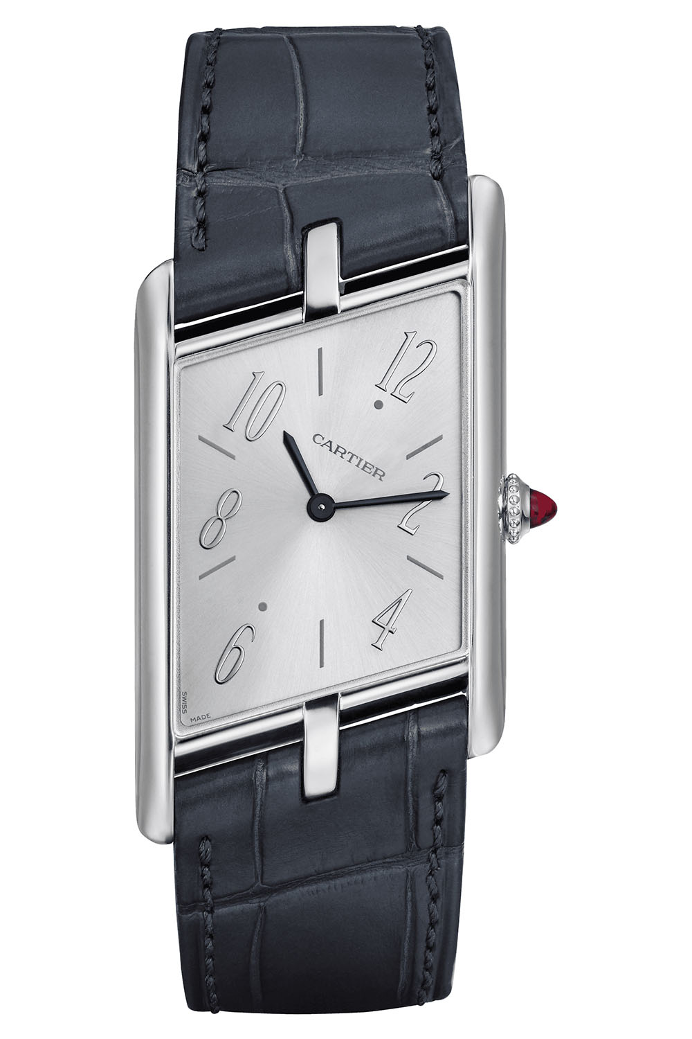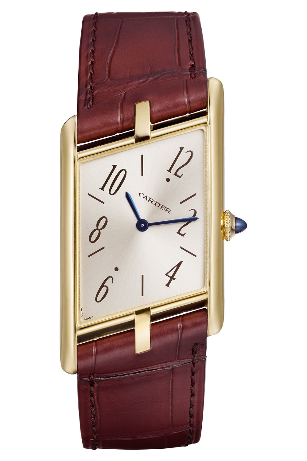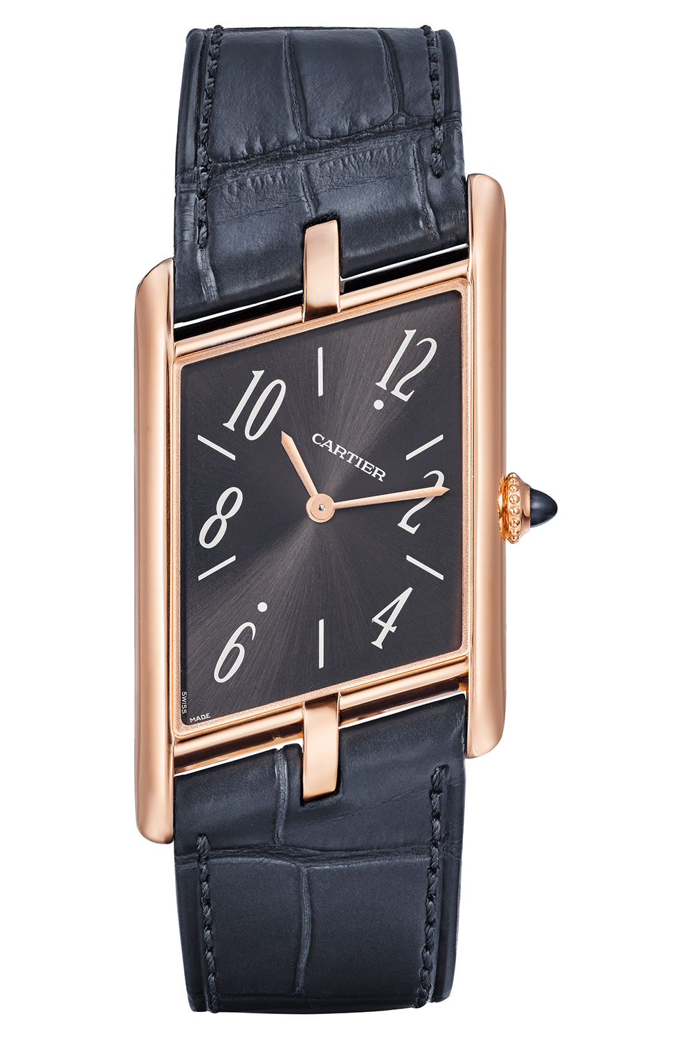 Quick facts: Cartier Privé Tank Asymétrique – platinum, pink or yellow gold case – 47.15mm x 26.2mm x 6.38mm – hand-wound calibre 1917 MC – 16 mm x 12.95mm x 2.9mm, 21,600vph, 38h power reserve, 19 jewels – alligator leather strap on pin buckle – USD 26,400 (yellow and rose gold), USD 30,100 (platinum) – limited to 100 pieces per model