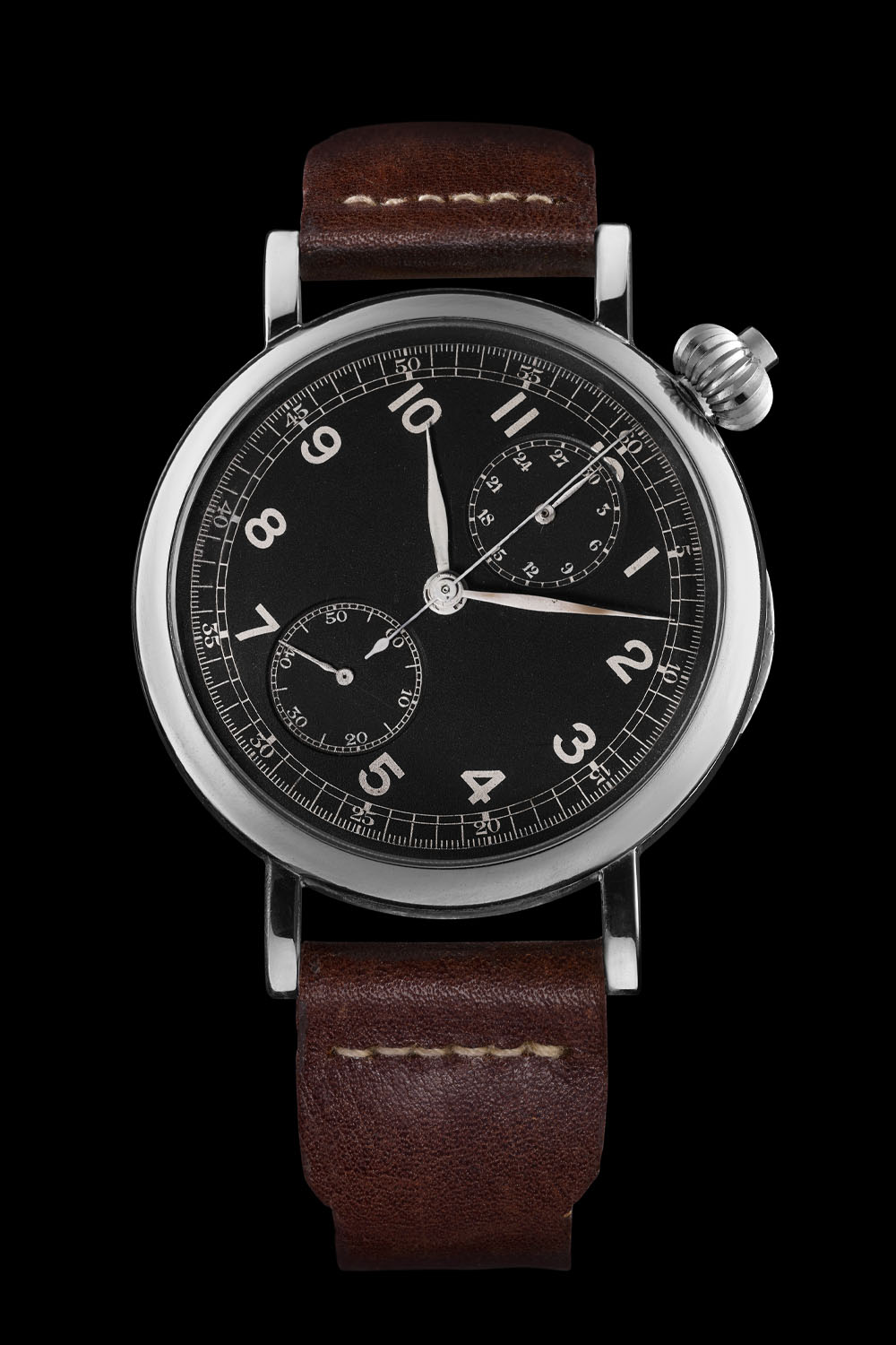 First issued between the World Wars, the Type A-7 Avigation Hack Watch was a pocket watch chronograph adapted to the wrist specifically designed for navigation. Think of it as an American equivalent to the German B-Uhr Fliegers, only with a chronograph, or to the French Type 20 (see our article about Type 20 watches here). It was supplied to the US Army Air Corps (1926-1941), the predecessor of the US Army Air Forces (1941-1947), and later renamed US Air Force (1947 – present days). The Longines Type A-7 Avigation was designed for aircraft navigation, “Aerial Navigation”, from which derives the name “Avigation”.
