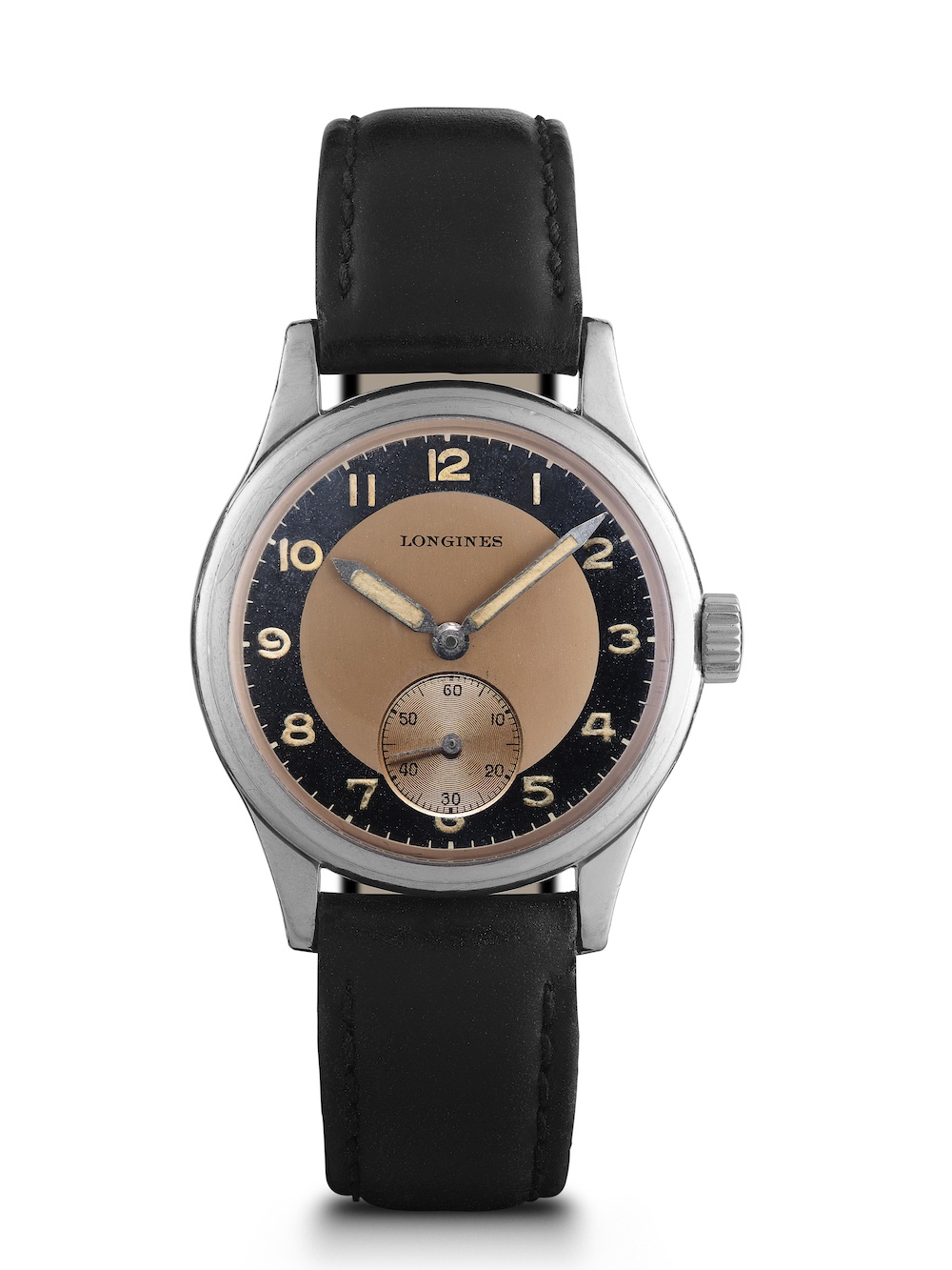 Following many successful models that paid homage to past models, such as early diving instruments or military pieces, the brand now looks at another angle with civilian watches from the 1940s; the so-called ‘Tuxedo’ watches due to their combination of white and black colours. In 2020, the brand resurrects two models, illustrated above, a small seconds watch from 1945 – with some military design clues (hands and case, for instance) – as well as a chronograph from 1943 – with a classic two-tone layout, Art Deco Arabic numerals and a sectorized layout.