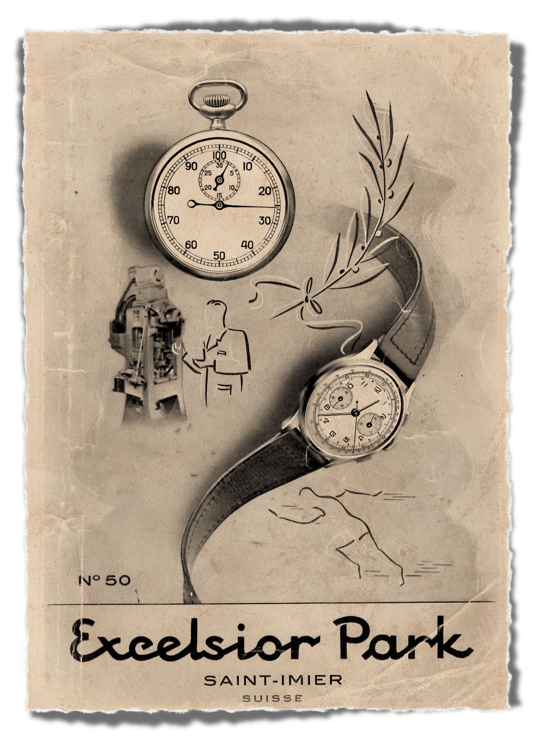 Excelsior was born in 1866 in the small but quite famous (at least if you’re into watches) town of St. Imier, Switzerland – also the hometown of Longines and the birthplace of Breitling. Founded as a watch movement company by Jules-Frederic Jeanneret, it would become Excelsior Park in 1891 (to appeal to English-speaking markets) and quickly became a prominent brand for chronograph movements and instruments. For years, it continued building its legacy by developing its own calibres, producing chronographs for every type of sports, and providing movements for other brands such as Girard-Perregaux, Gallet and Zenith, among others. Even though it was less famous than Zenith or Omega, the brand was of importance in the field of stopwatches and timing instruments for sports.