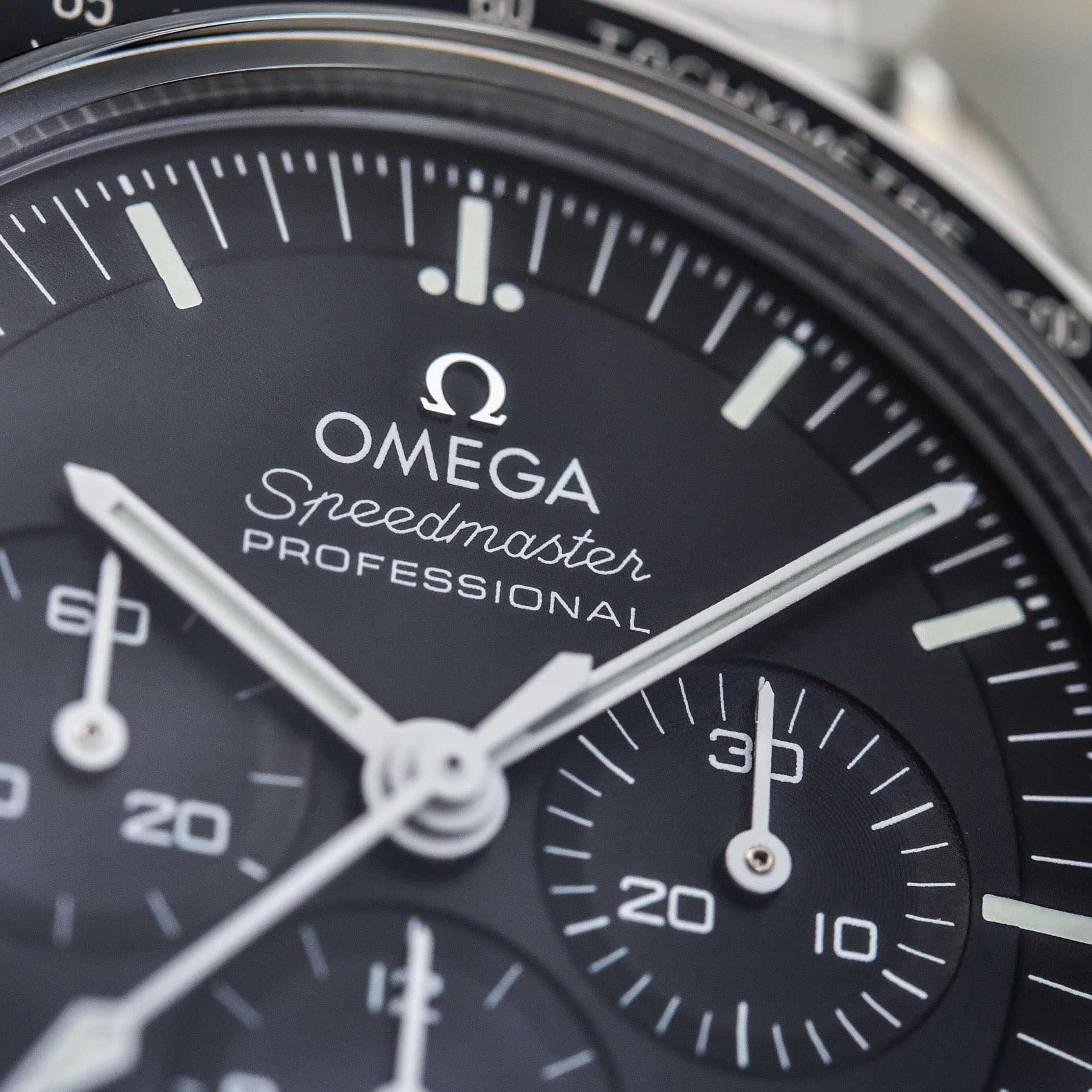 As for the hands, the Speedmaster Moonwatch Professional Master Chronometer shows minor evolutions. In fact, this mostly has to do with a new central seconds hand, which once again echoes the style of the vintage ST 105.012 model. It now has a slightly larger diamond luminous tip that is positioned closer to the periphery of the dial. Also, Omega moved back to a teardrop counterweight with a thinner hand.