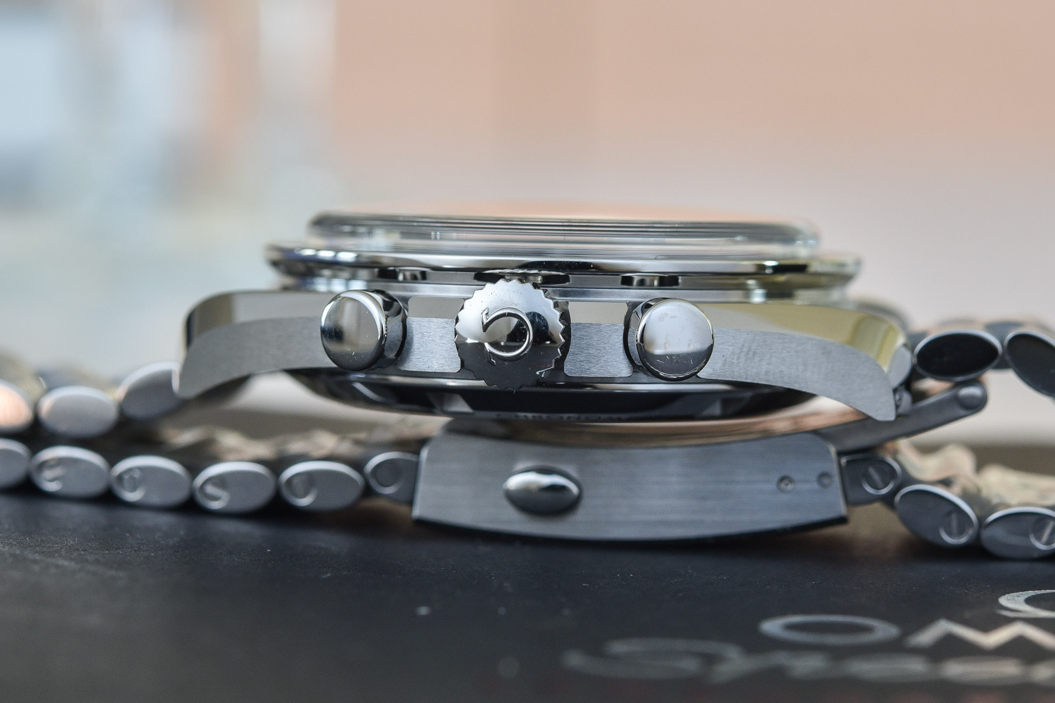 Are there new features to be noticed? Well, it seems that the case has been slightly “reshaped” and is the same that what’s used in the Silver Snoopy Award 50th anniversary. The main difference is a slightly thinner polished bevel with the brushed band being larger than before (on the pushers’ side) and lug tips than appears a bit more angled. Also, the pushers (a bit shorter) and crown are different on this model than they used to be in the past. The latter is wider, which should help to wind the watch. We’re still talking minimal updates, though.