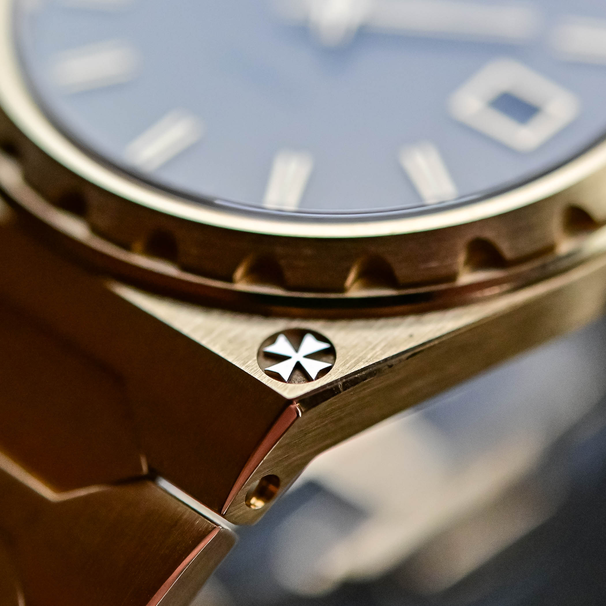 What is still alive is the sporty-chic attire of the watch and its appurtenance to the luxury sports watch category. In most areas, this Vacheron Constantin Historiques 222 is entirely respectful of Jorg Hysek’s initial design and the proportions have been, on most parts, respected. As such, the case measures 37mm in diameter and retains the barrel-shaped central part topped by the signature fluted bezel of the collection and the Maltese Cross at 5 o’clock, here applied in polished white gold. Finishings techniques have been respected too, with circular brushed surfaces on the bezel, vertically brushed surfaces on the case, horizontally brushed surfaces on the sides and multiple thin polished bevels around the case and the bezel to enhance the luxurious feel.