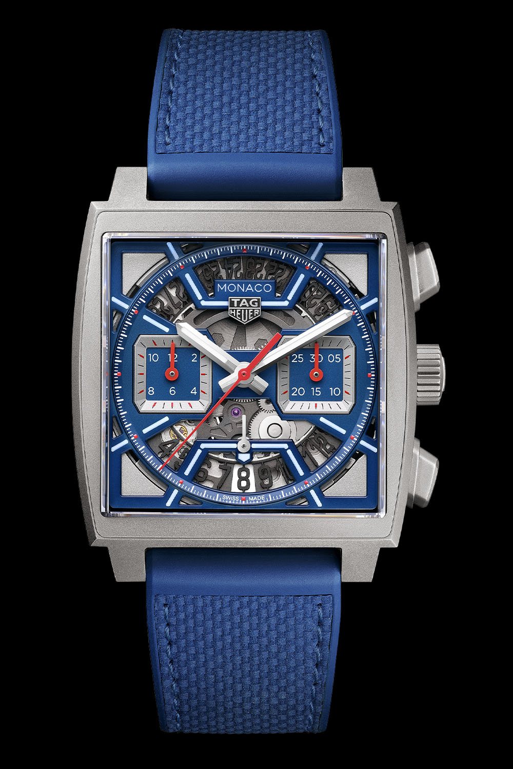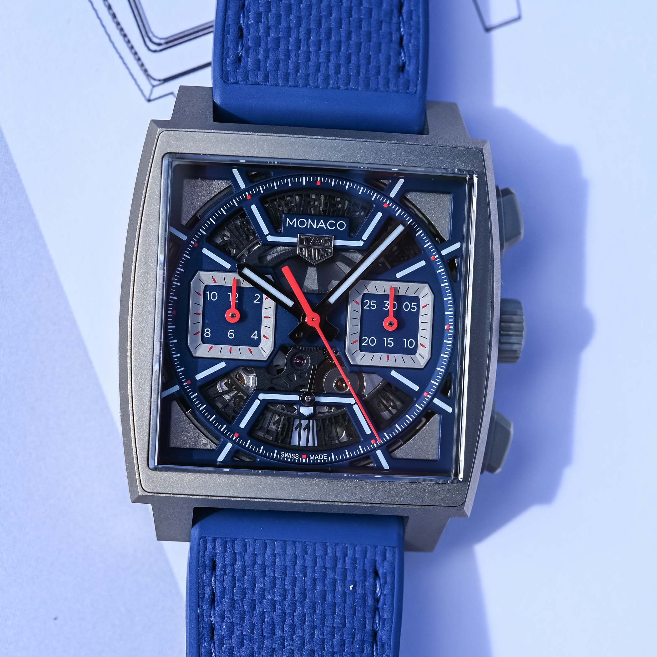The TAG Heuer Monaco, the instantly recognizable square chronograph designed at the end of the 1960s, is nothing short of an icon (a word often abused, but that does have its place here). Fueled by the connection with motorsport, worn by legends in cult movies, oddly cool and boldly designed, and with more than half a century of stories to tell, it has recently been presented in multiple iterations, including classic designs or audacious colours. Today, TAG Heuer is presenting what could be the most contemporary and technical take on its Monaco Chronograph in recent years, a version that reveals parts of the movement on the dial side and that plays on modern graphics to animate its display. Here’s the new TAG Heuer Monaco Skeleton Chronograph.