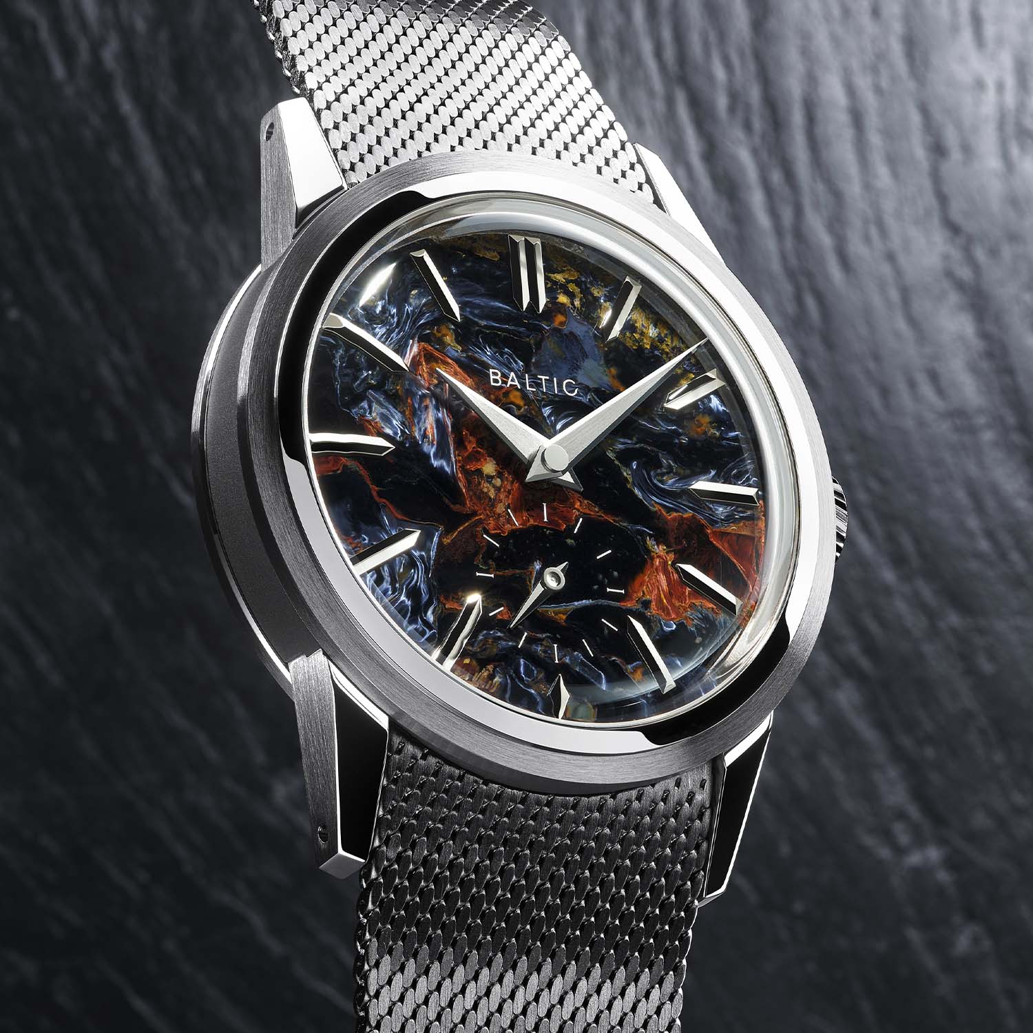 With its first standalone boutique now open, Baltic brings the stone concept into the core range. The new Prismic Stone series joins the permanent collection, featuring four dials in Pietersite, Pink Albite, Bloodstone, and Dumortierite. Each is cut from a thousand-year-old natural stone, so no two watches will look exactly alike.