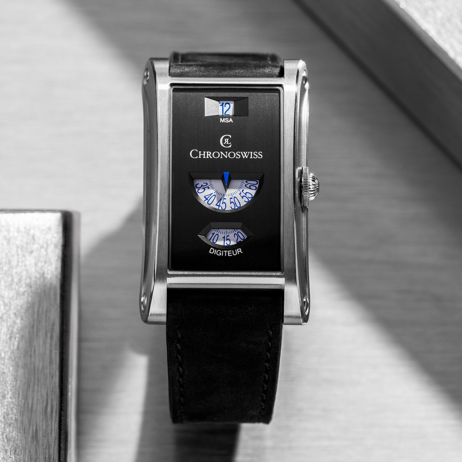 Chronoswiss has always moved in its own rhythm. From the regulator wristwatches that defined its 1980s identity to today’s bold Lucerne-built timepieces, the brand has never shied away from doing things differently. Few statements were as radical as the Digiteur, a watch without hands, powered by a mechanical calibre, yet read like an early digital display. When Gerd-Rüdiger Lang launched the Digiteur MSA (Montre sans Aiguilles) in 2005, it was a love letter to the mechanical digital wristwatches (montres à guichets) of the 1920s-30s: a rectangular precious-metal case housing a hand-finished shaped calibre with three windows for jumping hours, digital dragging minutes, and running seconds. Built in roughly 990 pieces across various versions, it became a bit of a cult object, anachronistic and defiantly analogue as the world went digital. But now, with renewed interest in jumping hour and guichet watches, it is potentially the right timing to bring it back.