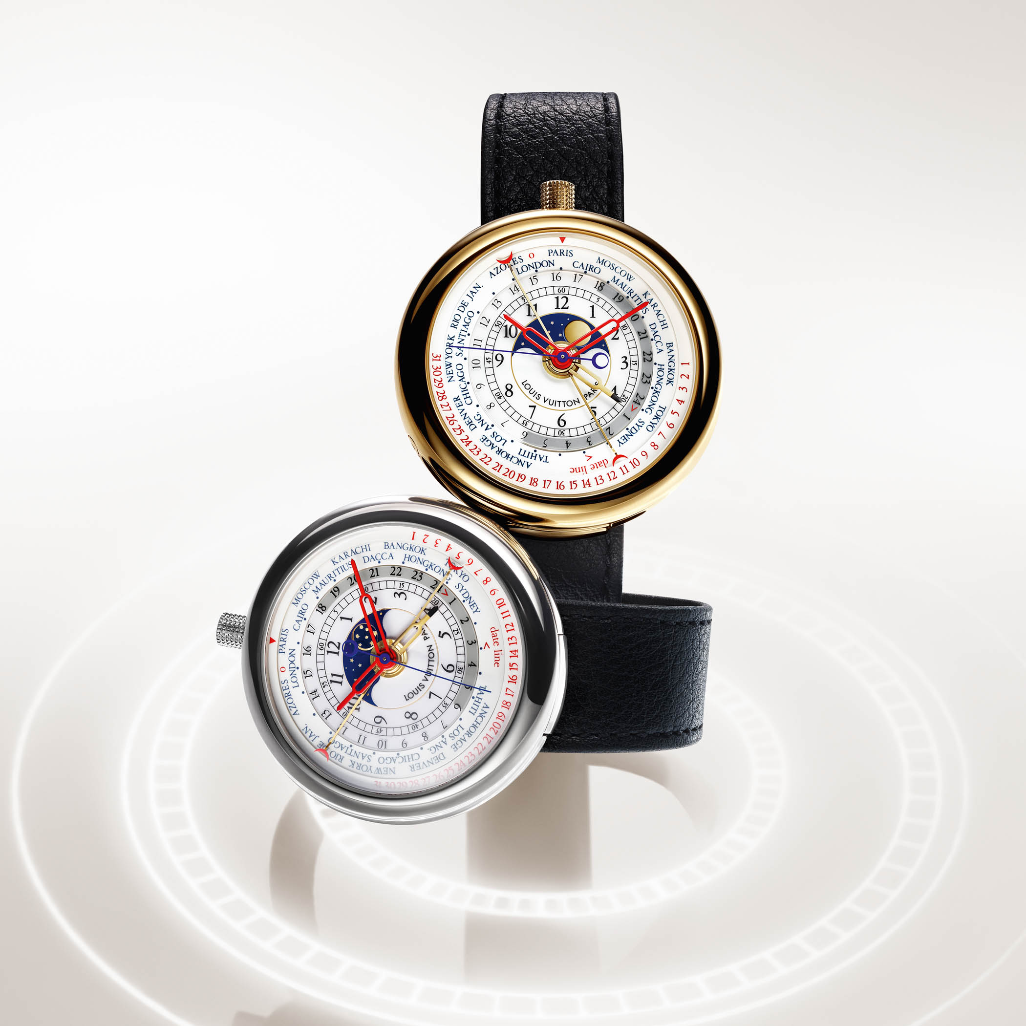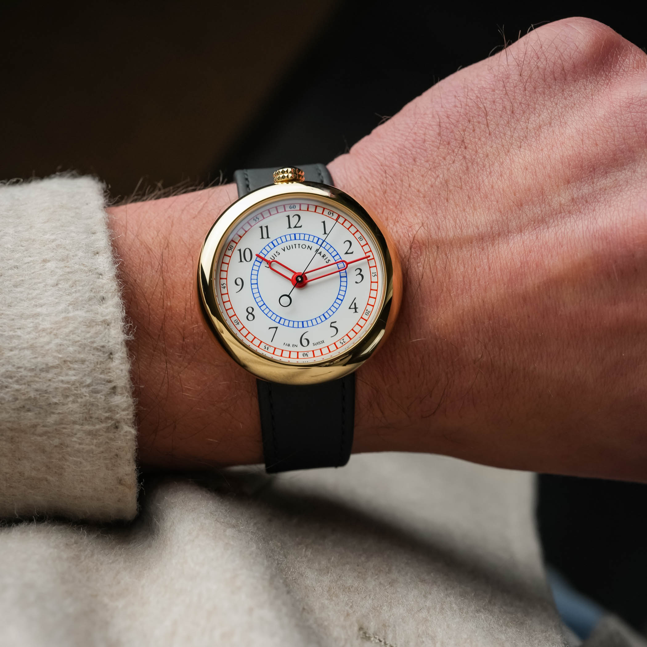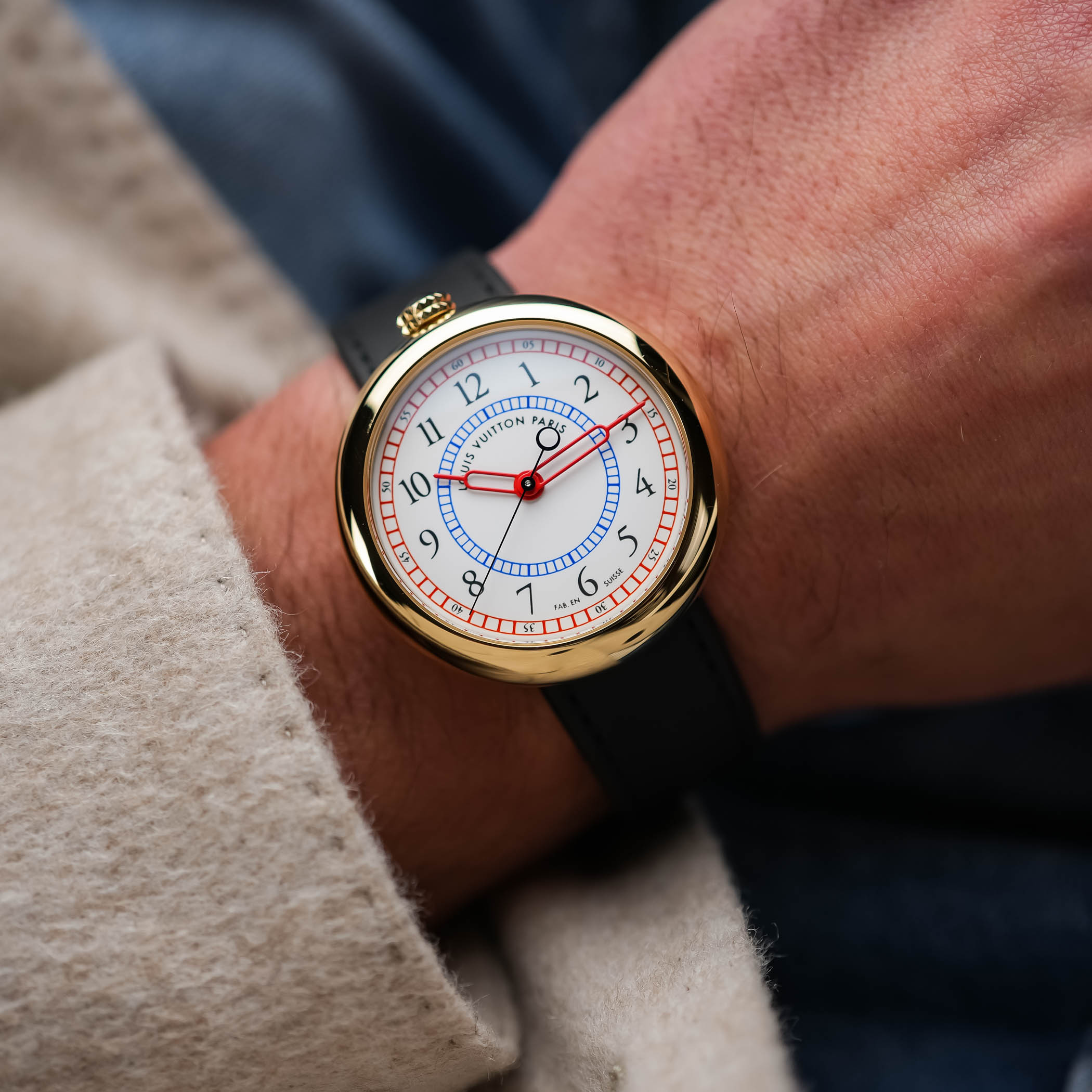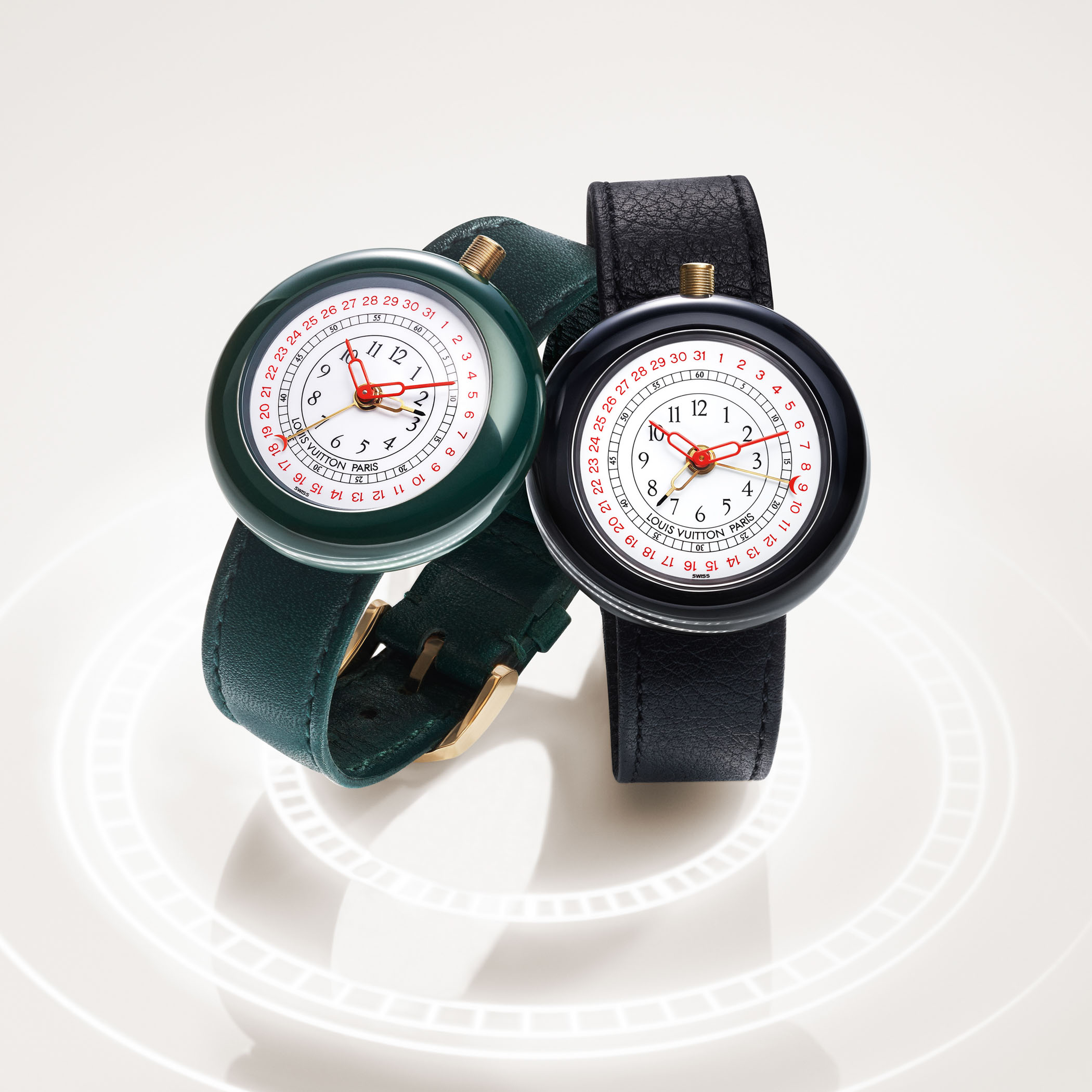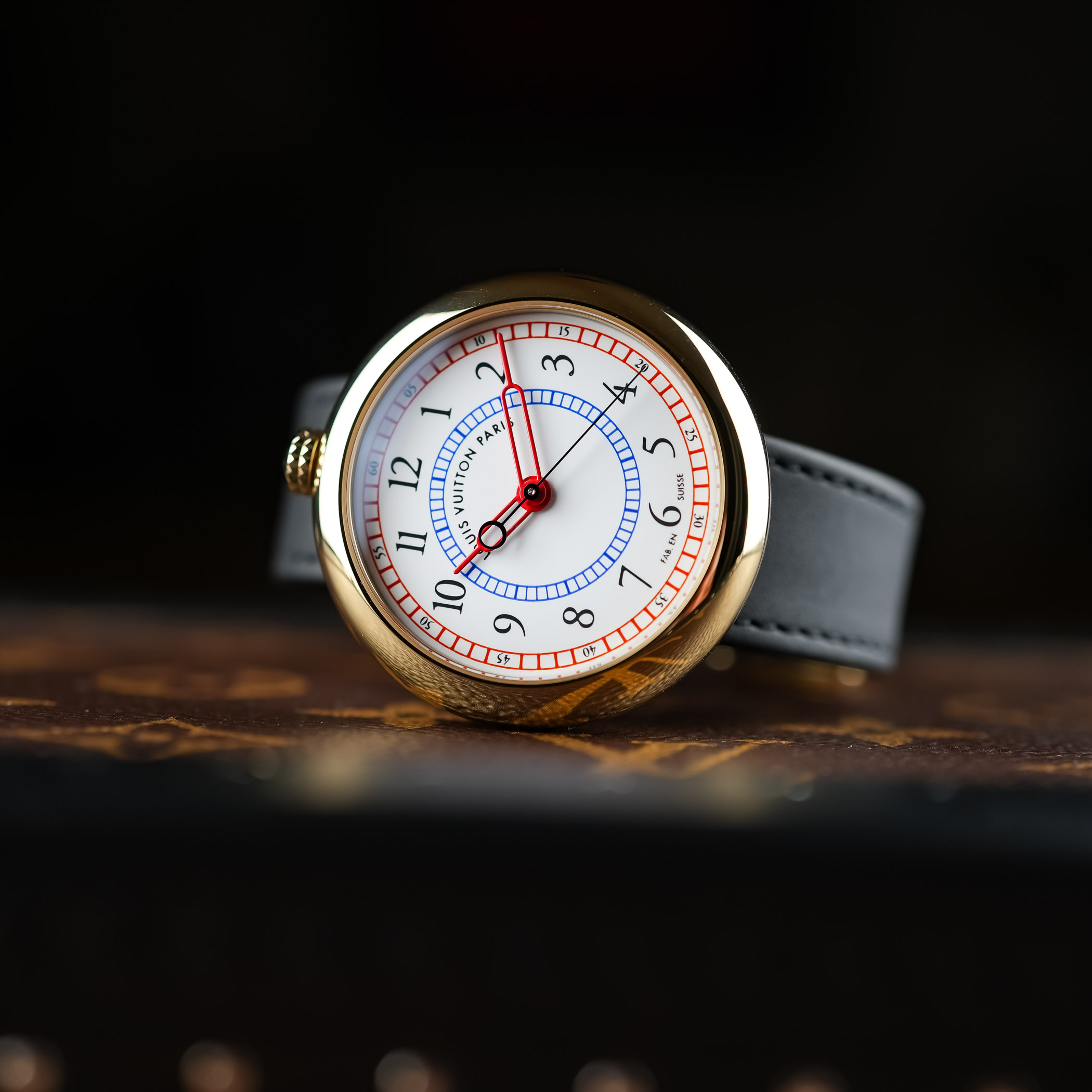 Before the Tambour, Louis Vuitton made its first foray into watchmaking in 1988 with the LV 1 and LV 2, which were created in collaboration with Italian architect Gae Aulenti, who had just completed the transformation of the Orsay Museum in Paris and was also famous for the Pipistrello lamps.