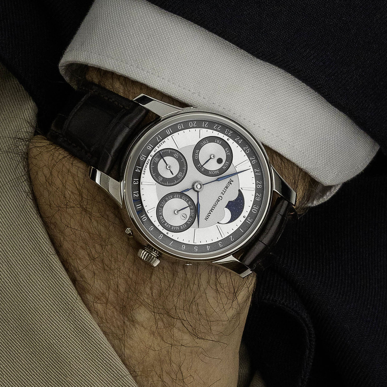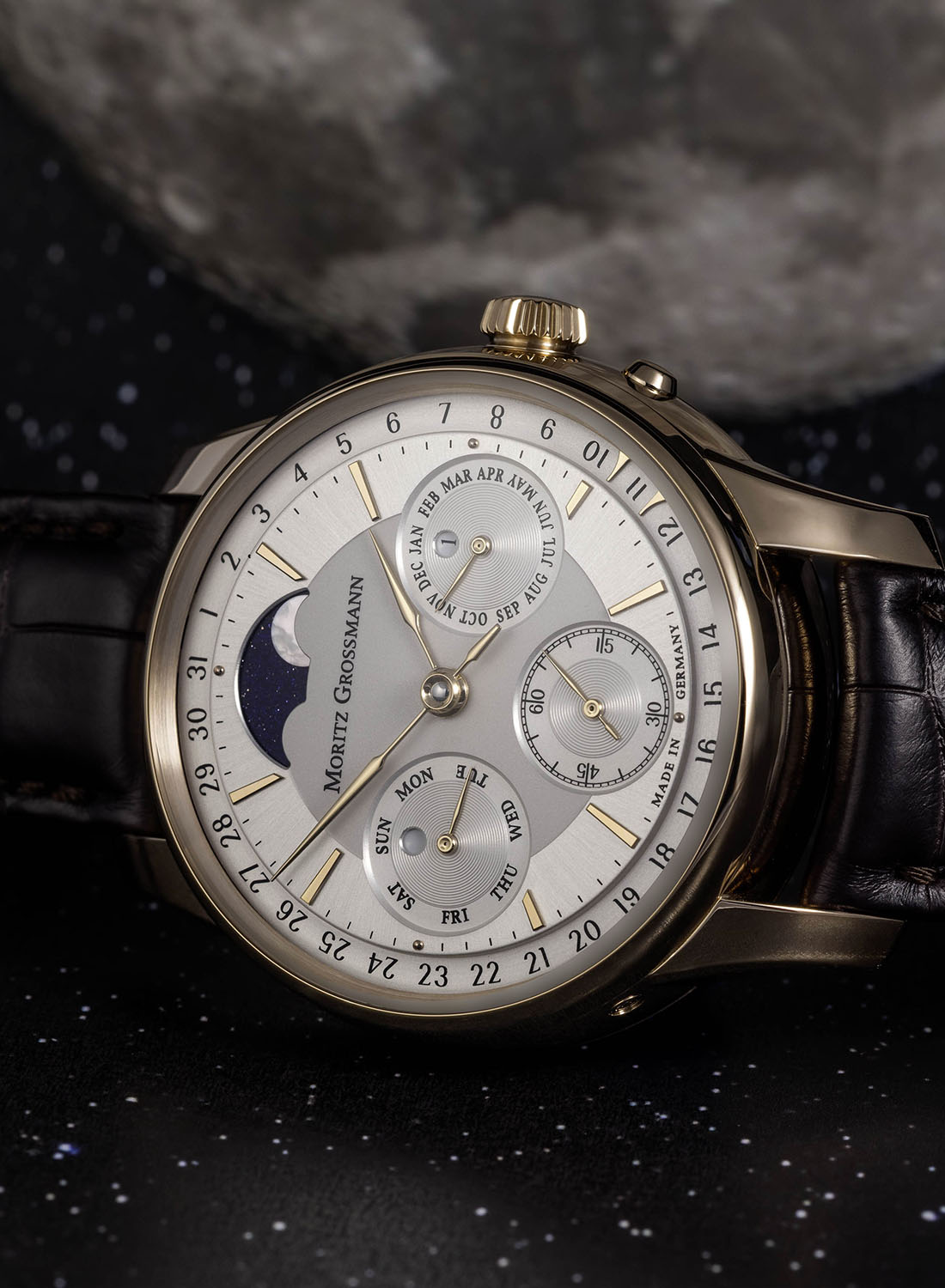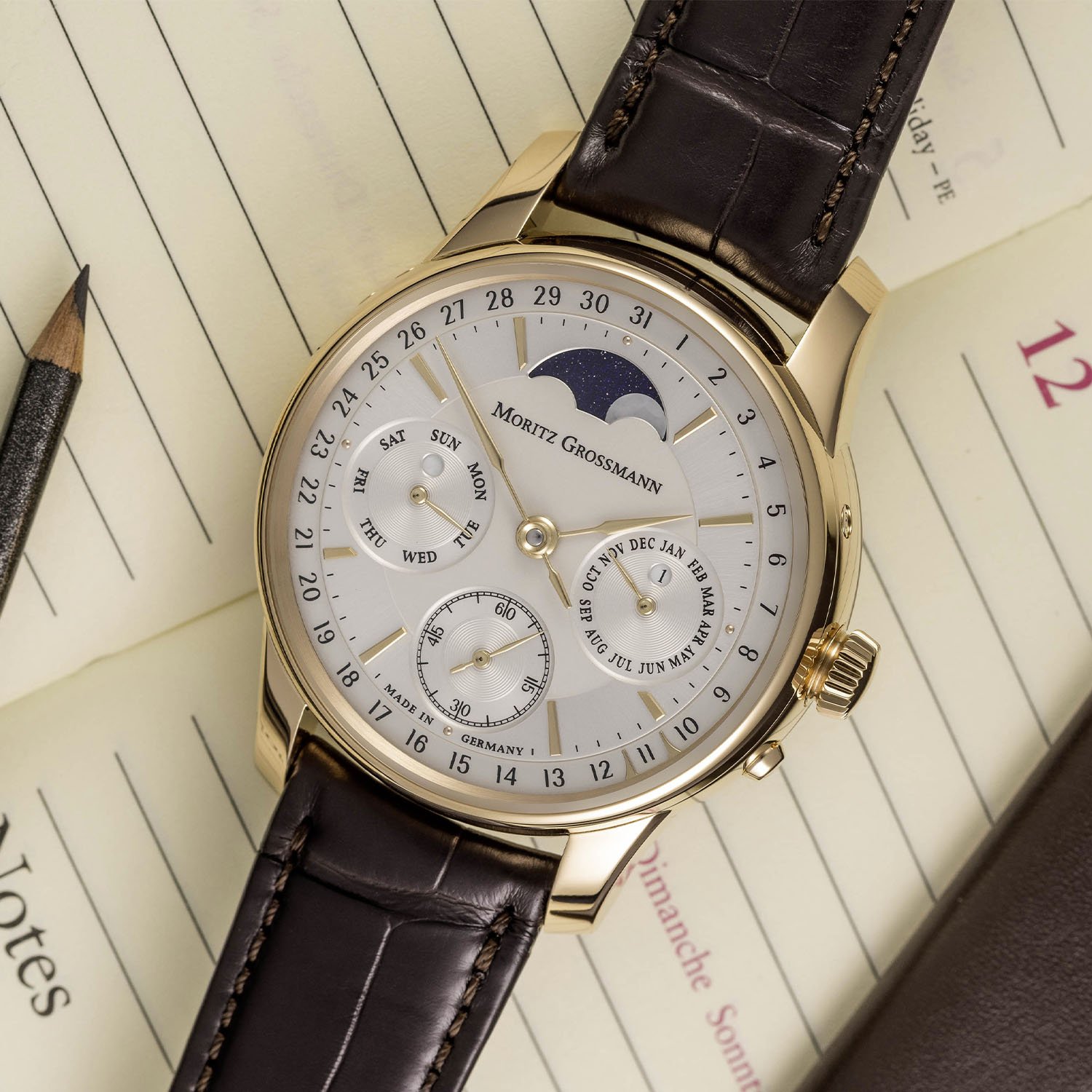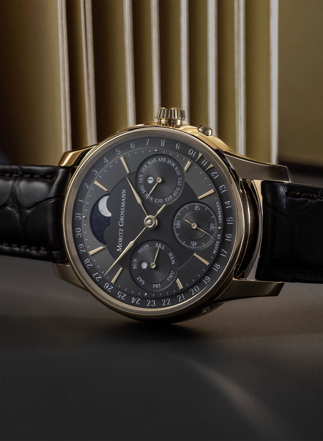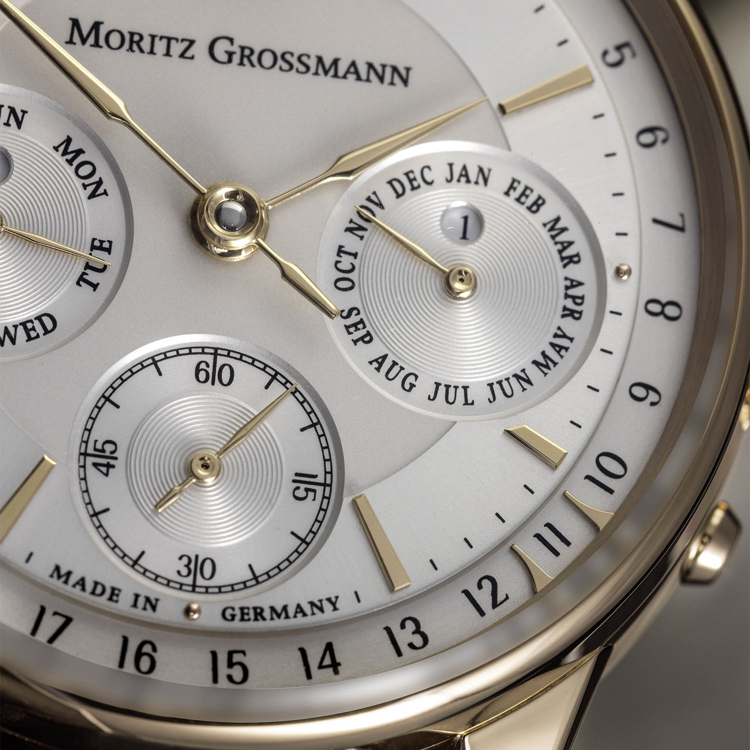 One of the founding fathers of watchmaking in Glashütte, together with F.A. Lange, Moritz Grossmann also established the German School of Watchmaking. This important name returned in 2008, when trained watchmaker Christine Hutter founded a manufacture of classically German, high-end watches. For its 17th anniversary, the brand is about to release a first: a watch based on one of the classic haute complications, the QP. Indeed, while it offers great models in its range, such as a tourbillon, an unusual GMT, or one of the most fascinating automatic watches on the market, the brand never really ventured into highly complex displays. Until now, and the launch of this new Moritz Grossmann Perpetual Calendar.