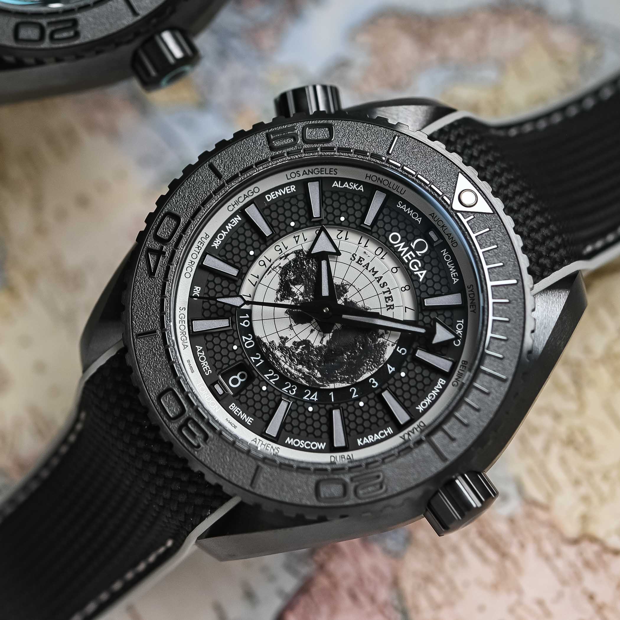 Slightly overlooked and possibly in the shadows of the classic Seamaster Diver 300M, the Planet Ocean is the most capable collection of dive watches in Omega’s range, comprising models from 600m up to 6000m water-resistance (without counting the all-mighty Ultra-Deep that survived the Mariana Trench). Born in 2005, it will be celebrating its 20th anniversary this year, and we can possibly expect a few surprises coming from Bienne. And the first one to emerge from the depths is this unprecedented take on the powerful Deep Black collection, the first PO to receive a world time complication. Here’s the brand-new Omega Seamaster Planet Ocean Worldtimer.