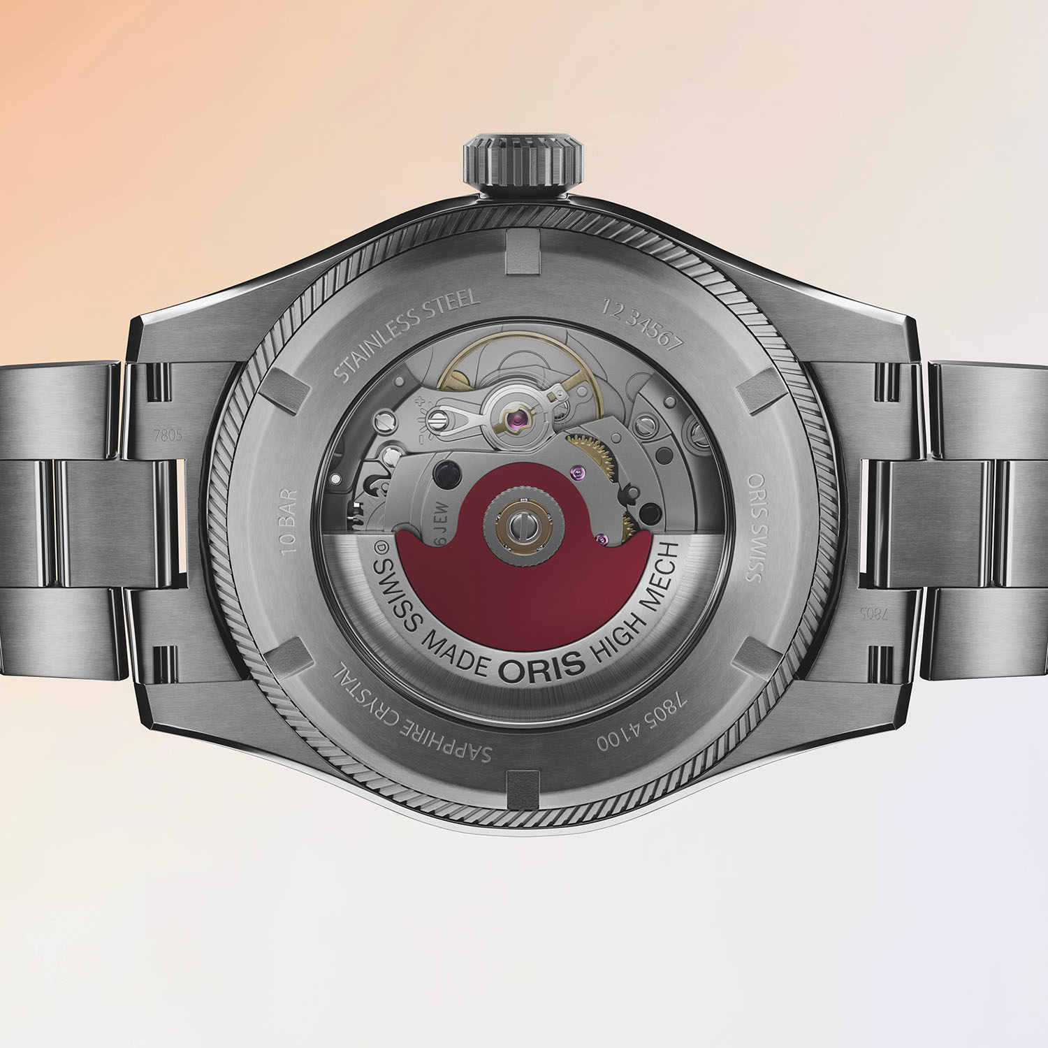 The new ProPilot Date series uses Oris calibre 733, an automatic movement based on a Sellita SW200 (a clone of the ETA 2824). This time-and-date architecture, with Oris’s signature red rotor, indicates centre hours, minutes, seconds, with an instantaneous date, date corrector and stop-second. It delivers 41 hours of autonomy and is a tried-and-tested movement, a choice aligned with the ProPilot’s mission statement: dependable, serviceable, unpretentious.