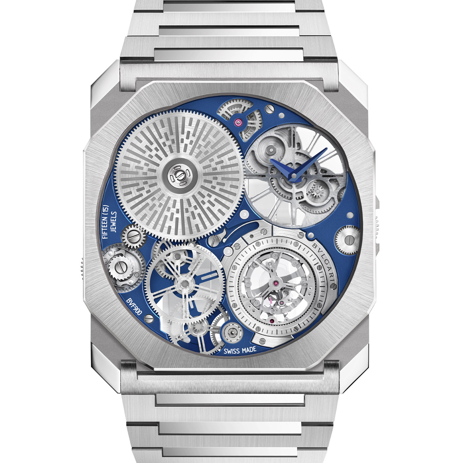 Powering the Octo Finissimo Ultra Tourbillon is the hand-wound calibre BVF 900, developed with Concepto. Operating at 28,800vph with a 42-hour power reserve, the movement relies on ball bearings and ultra-thin construction principles to minimise friction and height. The tourbillon is guided peripherally and integrated within the movement plane, a key factor in achieving such extreme thinness.