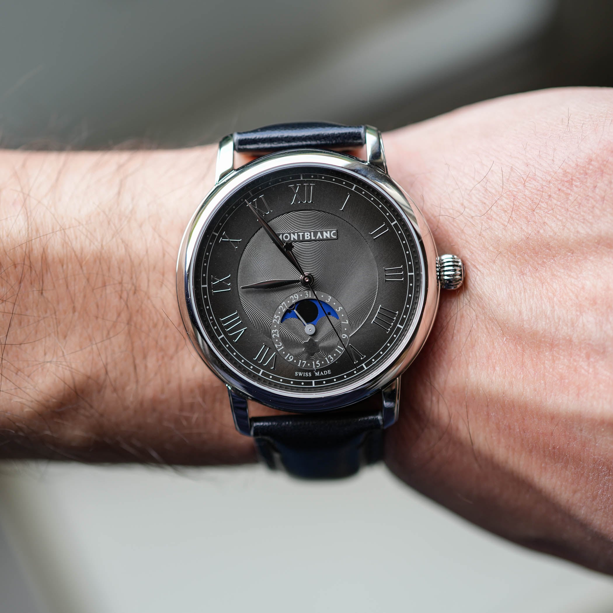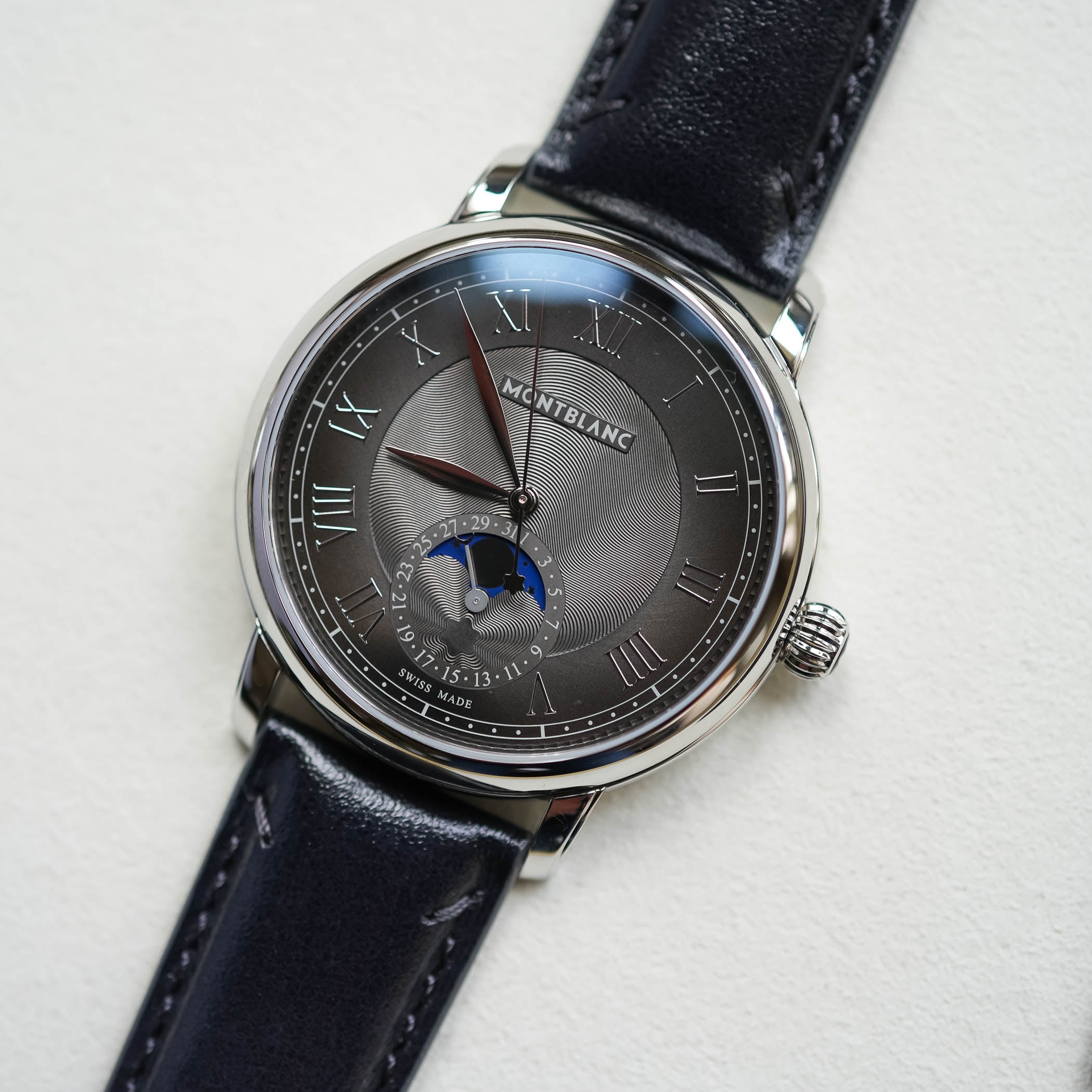 Quick Facts – 42mm x 11.38mm – stainless steel case, polished – sapphire crystal front and back – 50m water resistance – anthracite sfumato dial with guilloché – central hours and minutes, moonphase at 6 o’clock, pointer date – calibre MB 24.31 – automatic – 28,800vph – 42-hour power reserve – anthracite calf leather strap with vertical sfumato effect and stainless steel pin buckle – EUR 5,200