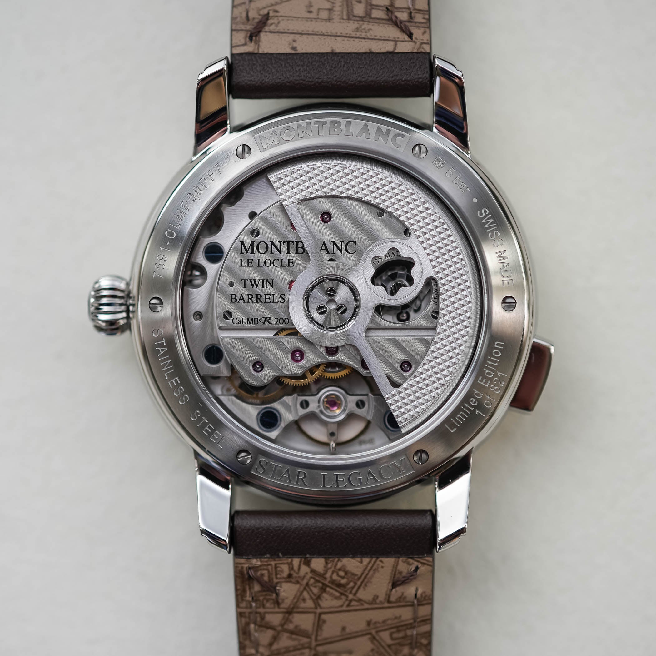 Quick Facts – 43mm x 15.01mm – stainless steel case, polished – satinated bezel – sapphire crystal front and back – steel monopusher at 8 o’clock – 50m water resistance – brown dial with a horse racing motif, beige sfumato finish – Arabic numerals – Dauphine hour and minute hands – off-centred time display, dual time, date, day and night – hands with Super-LumiNova – Montblanc Manufacture Calibre MB R200 – automatic – 28,800vph (4Hz) – 72-hour power reserve – brown calf leather strap with steel triple-folding clasp, 1821 map of Paris pattern on the lining – limited edition of 821 pieces – EUR 9,200