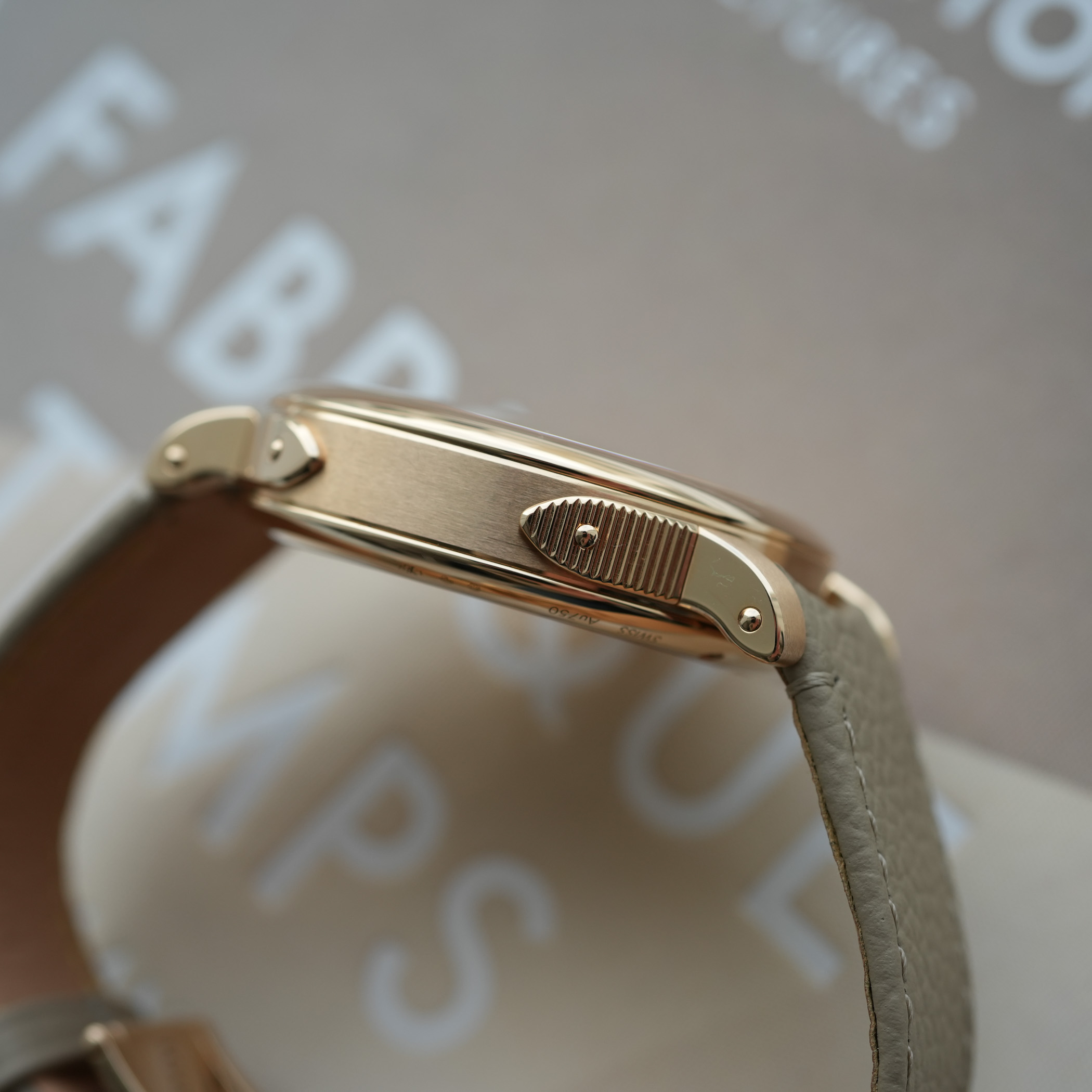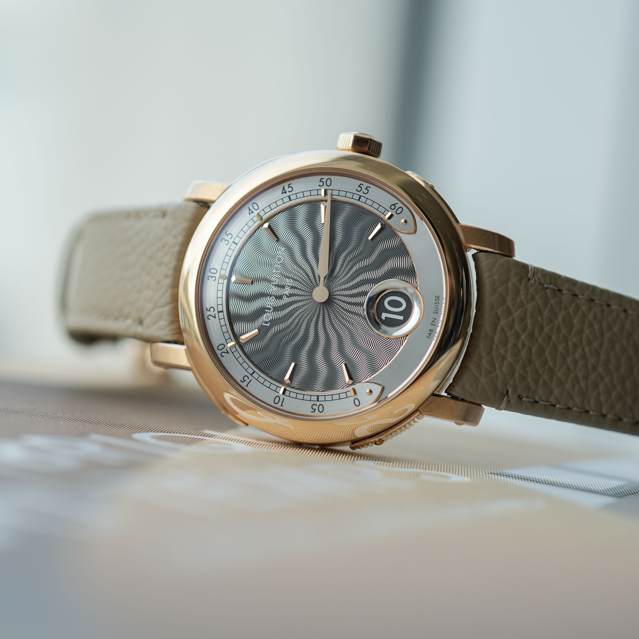 Quick facts: 40mm x 12.3mm rose gold case – sapphire crystals on both sides – 50m water-resistant – silver-tone hand-guilloche dial – LFT SO13.01 calibre, in-house hand-wound, 3Hz, 80h power reserve – Beige calf leather strap, rose gold folding buckle – ref. W3PGA0