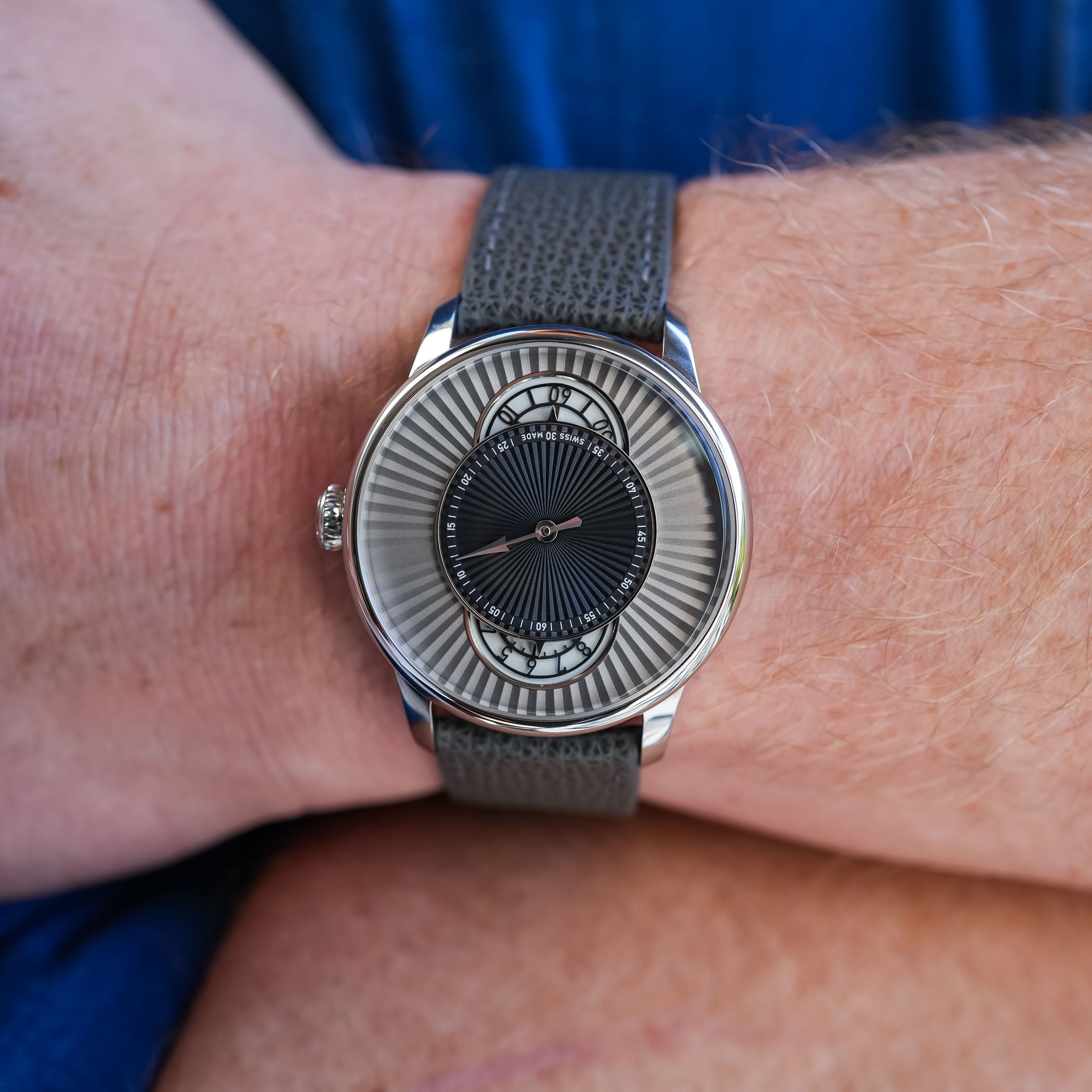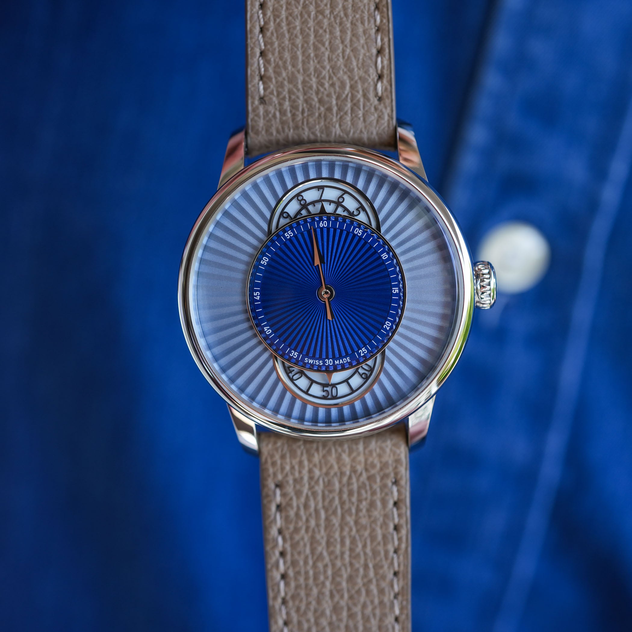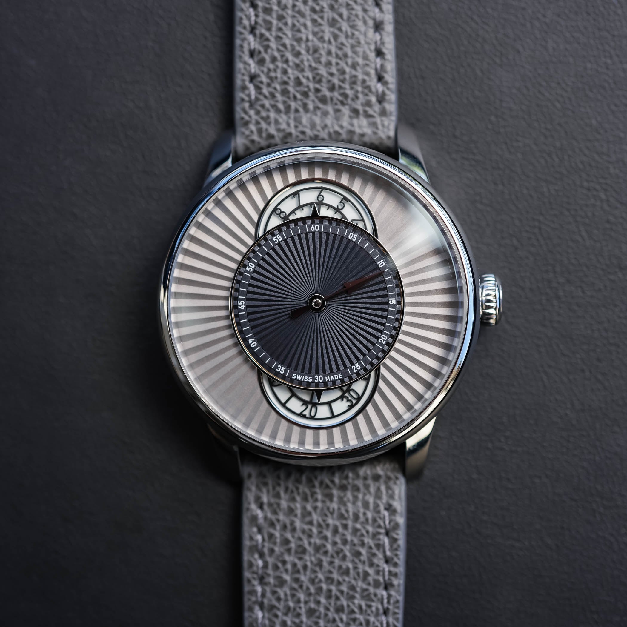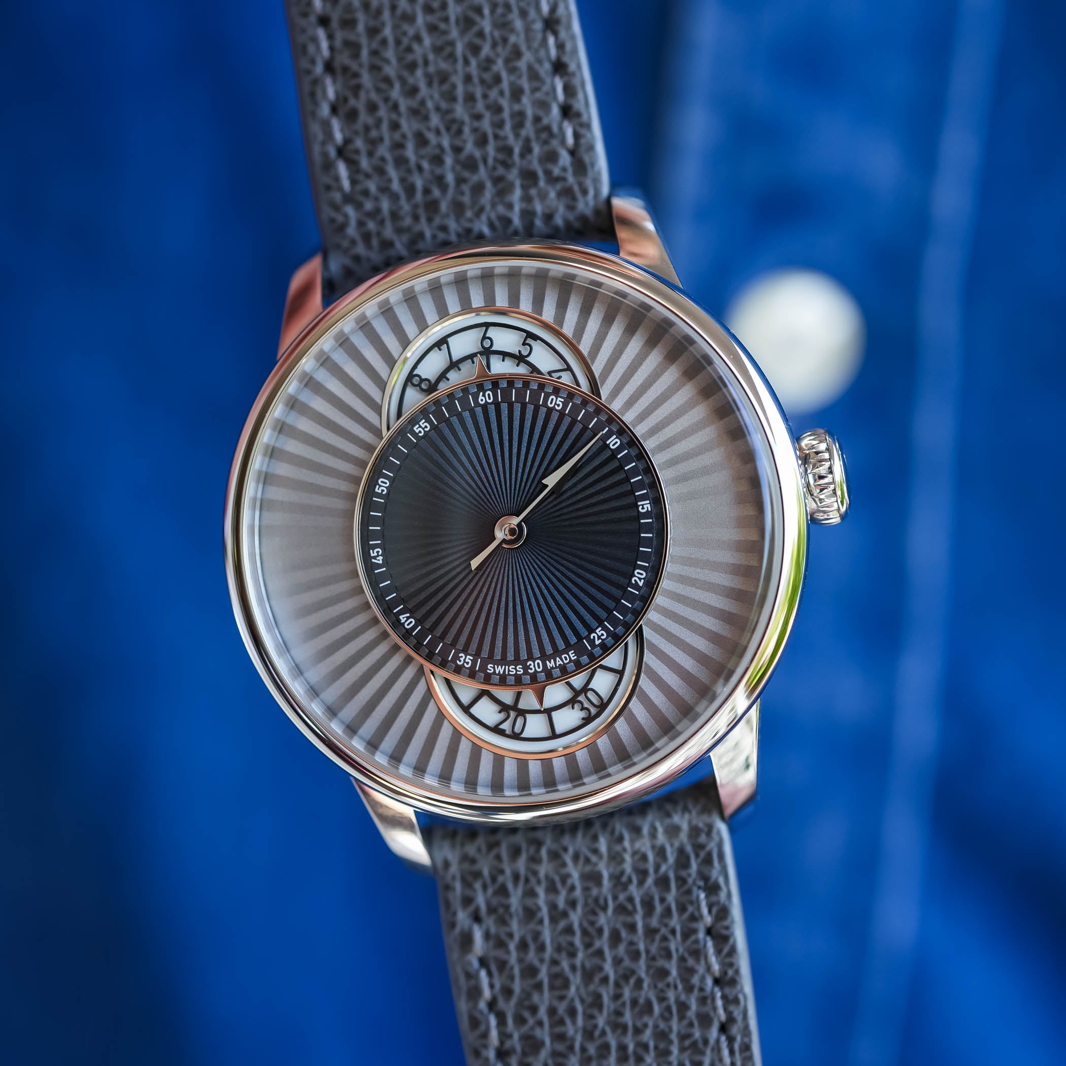 Louis Erard’s Regulator is the designated model for the latest transformation. Thanks to its three separate axes corresponding to the separate hours, minutes and seconds indications, the Regulator is one of the most frequently selected references for collaborations and artistic makeovers, including a recent collaboration with our friends at Worn & Wound with a blue flinqué enamel-inspired dial. Three years in the making, the blue Louis Erard Regulator for Worn & Wound is back, accompanied by a new grey proposal.