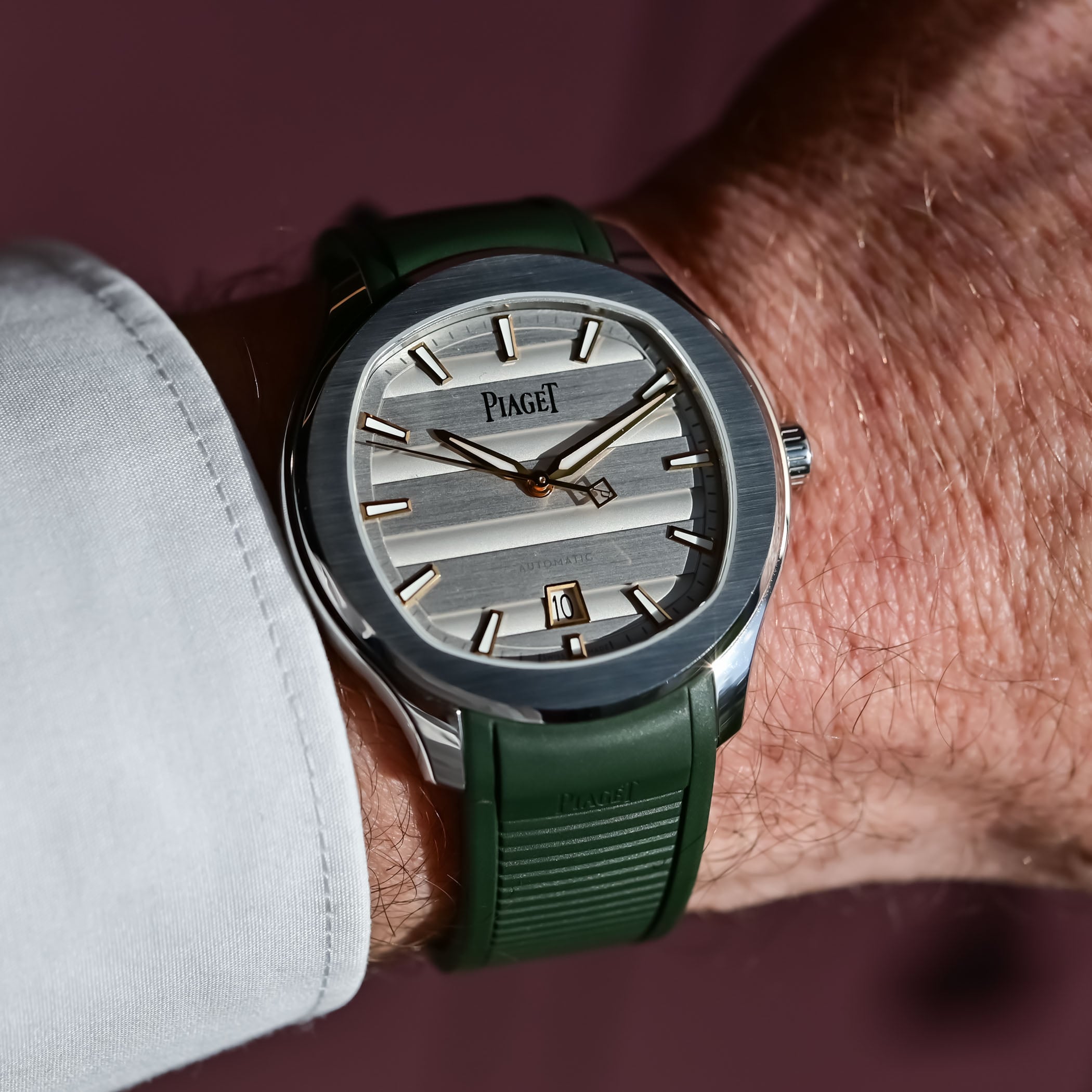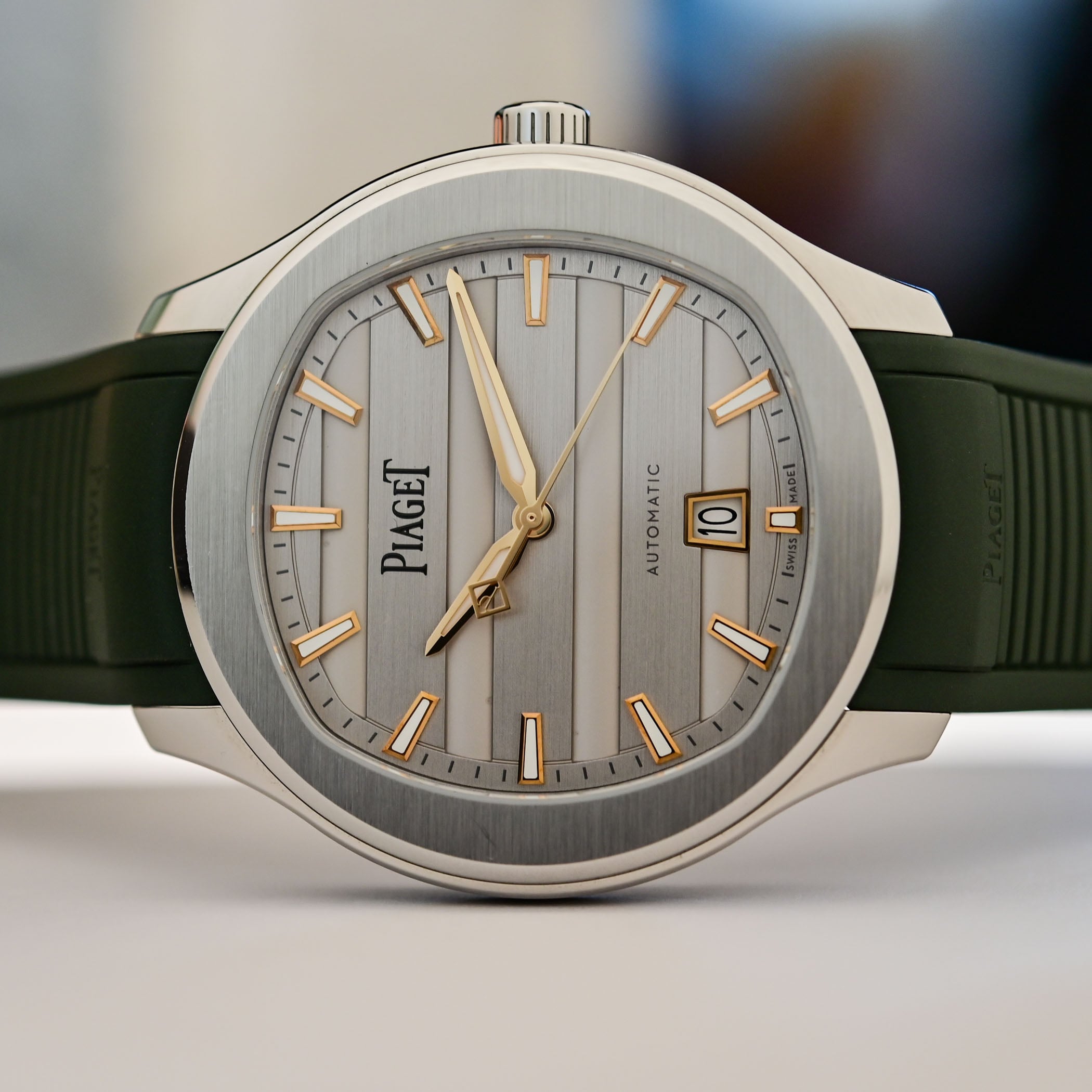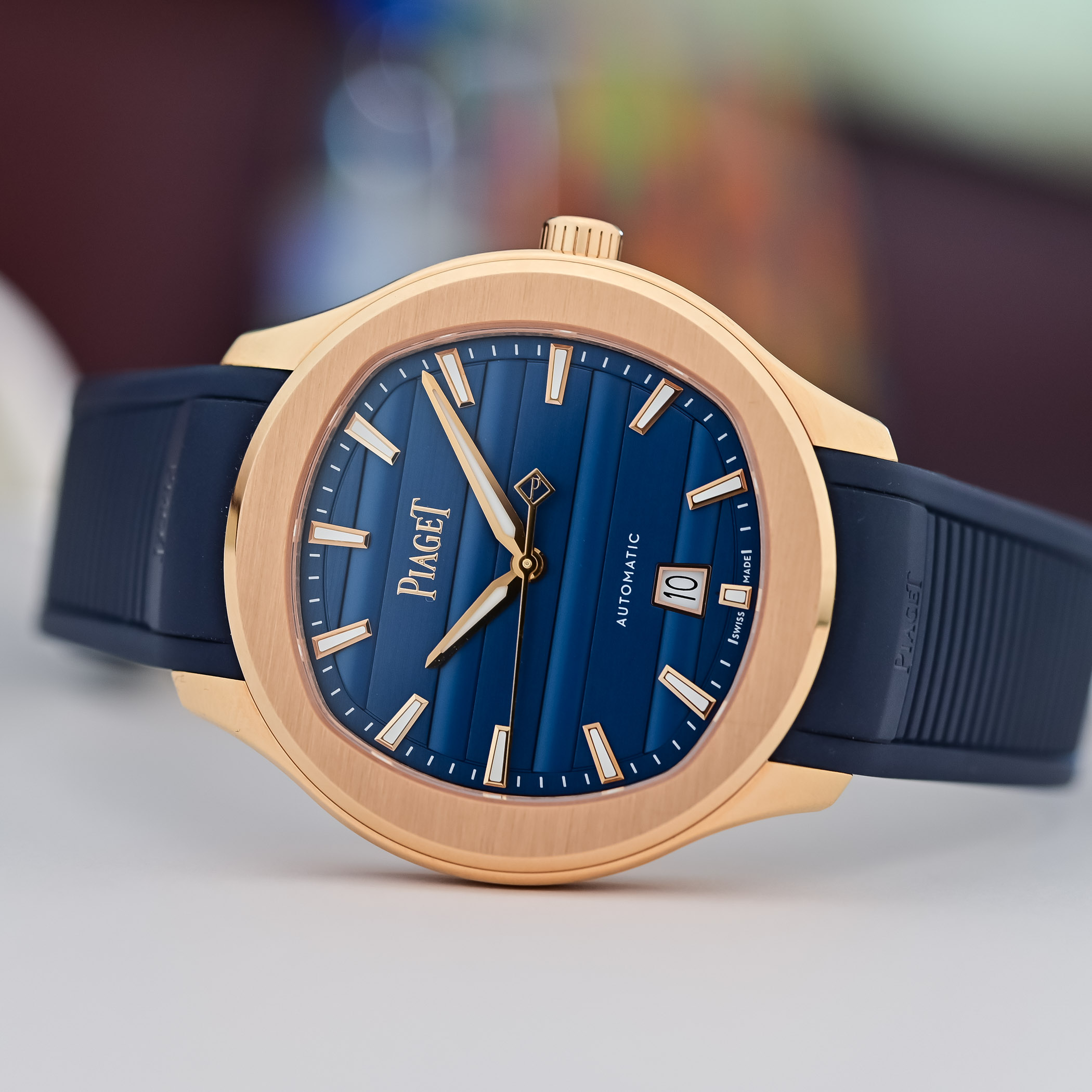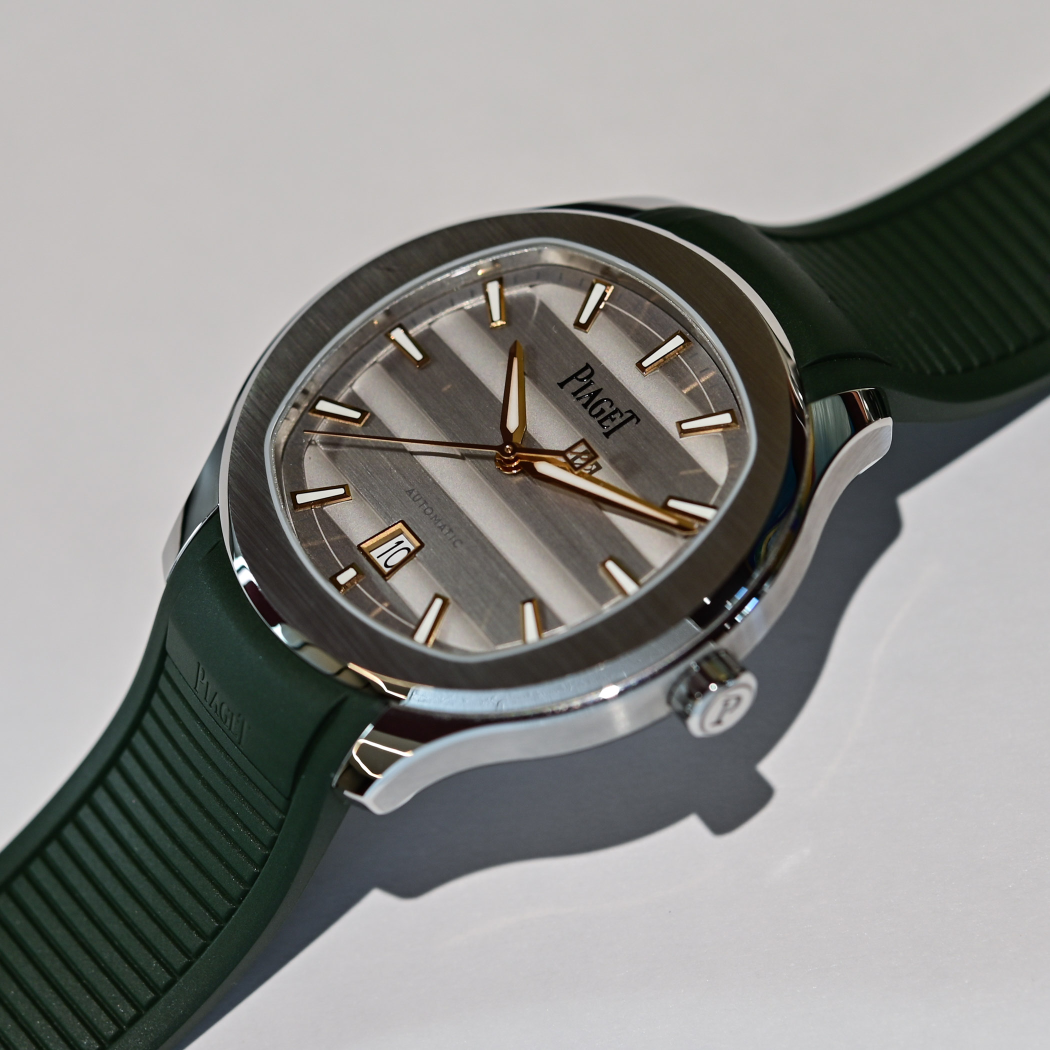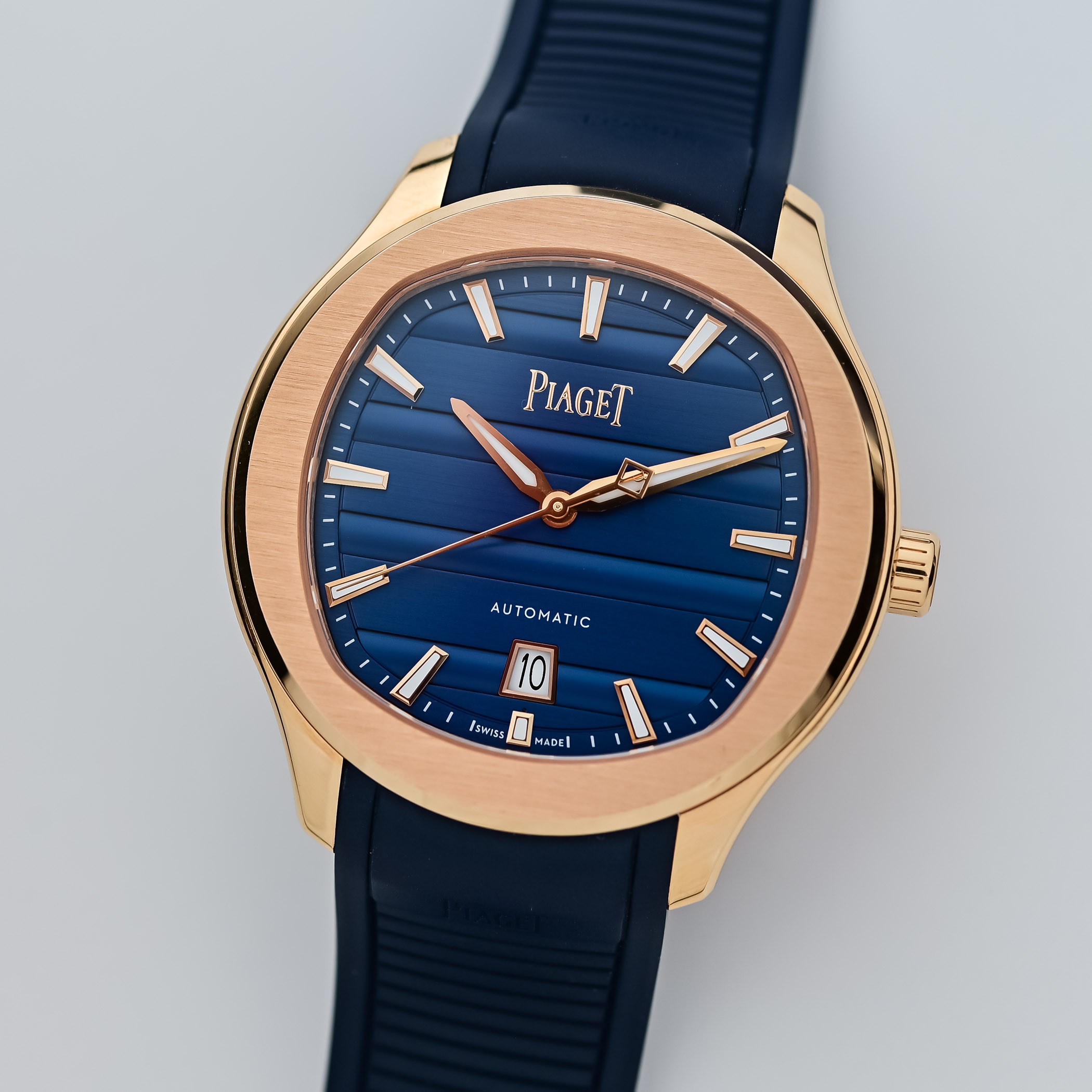 The four models presented on interchangeable steel or gold bracelets are delivered with an extra rubber strap; the rest are paired with interchangeable rubber straps. The new models expand the regular lineup. Prices range from CHF 11,700 in steel to CHF 49,200 in gold with diamonds. More information at Piaget.com.