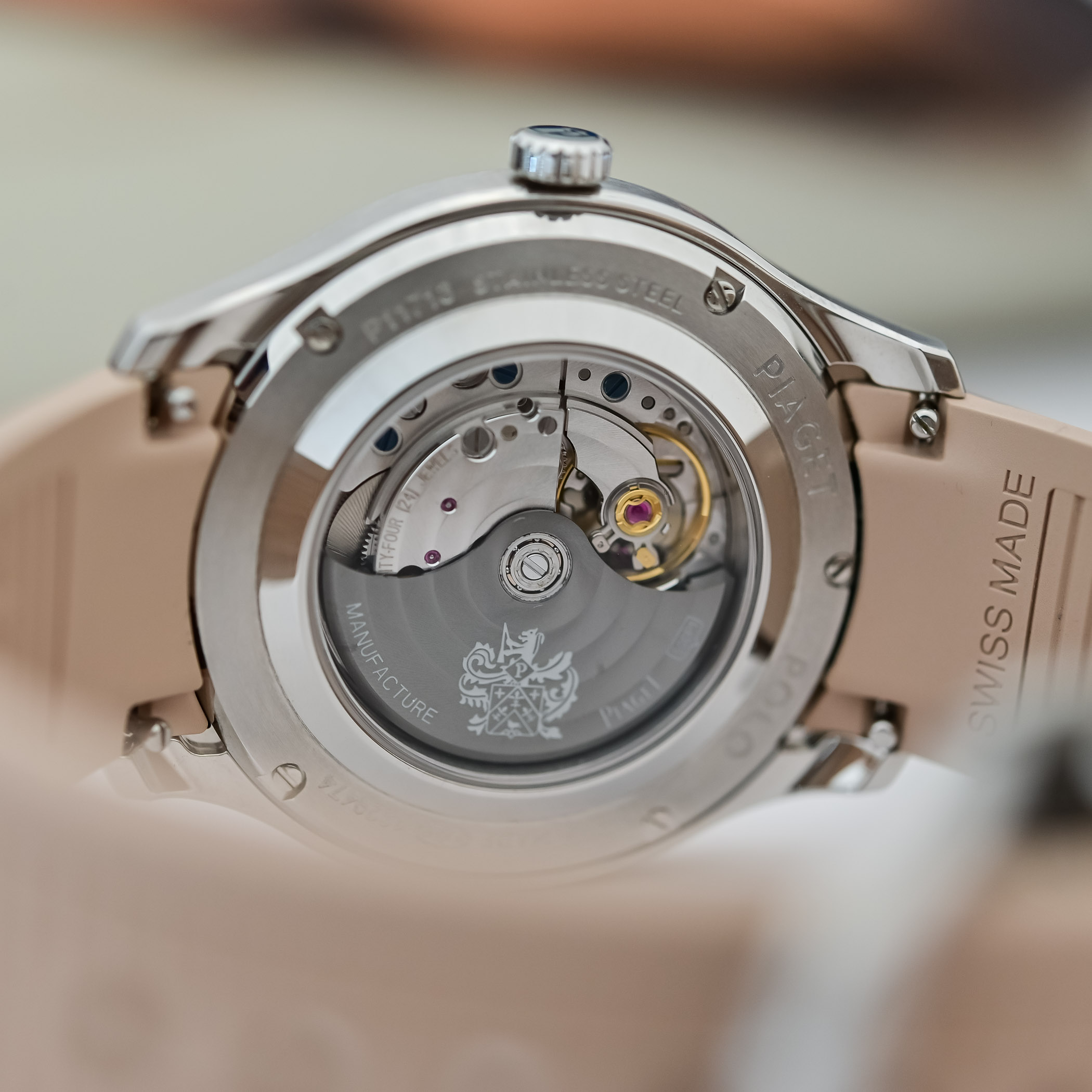 Following the 2024 release of the 42mm and 36mm his-and-hers Piaget Polo Date references with beige dials decorated with prominent horizontal gadroons, the brand returns with more new renditions featuring blue or silver dials traversed by rounded horizontal and polished gadroons with a date in an aperture at 6 o’clock. Available with or without brilliant-cut diamonds set in the indices and bezel, the 42mm references feature Super-LumiNova on the indices and hands, while the 36mm references feature Super-LumiNova only on the indices, as their hands are skeletonised. Presented in stainless steel or 18k pink gold cases, the wide bezel is decorated with horizontal brushing and a polished bevel matching the surface of the case middle.
