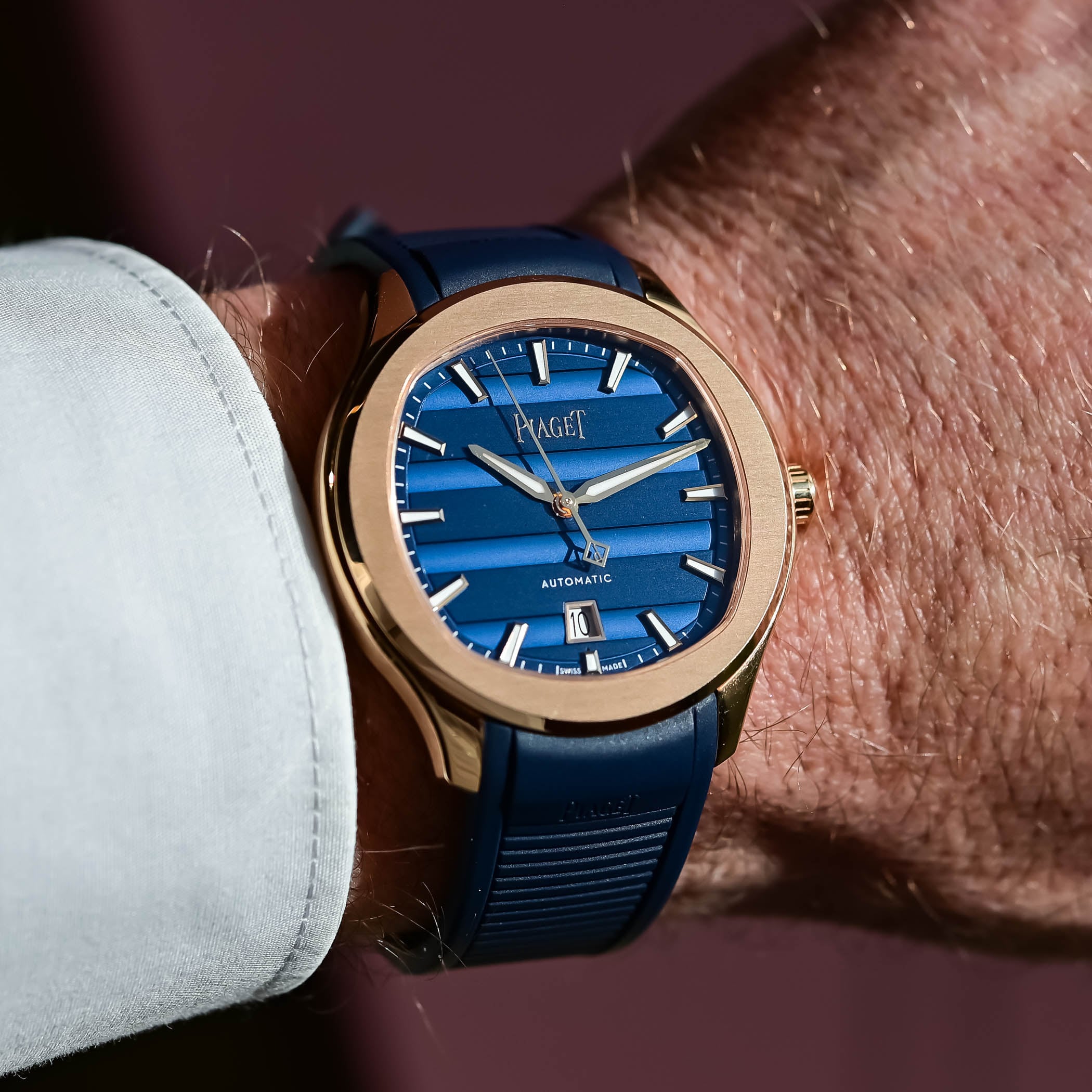 Piaget’s iconic Polo watch debuted in 1979 as a slim, sensual, all-gold integrated bracelet watch covered from head to toe with horizontal gadroons. In 2016, Piaget resuscitated the Polo name and transformed it quite radically into a steel, cushion-shaped luxury sports watch closer in shape to the brand’s Emperador collection. Recouping some of the Polo 79’s codes, the Polo sports watch collection adopted its signature gadroons and placed them on the dial of its Polo Date in 2024. For Watches & Wonders 2026, Piaget releases a fresh batch of Polo Signature Date models in two metals and two case sizes, featuring gadroon dials in silver or Piaget’s in-house blue.