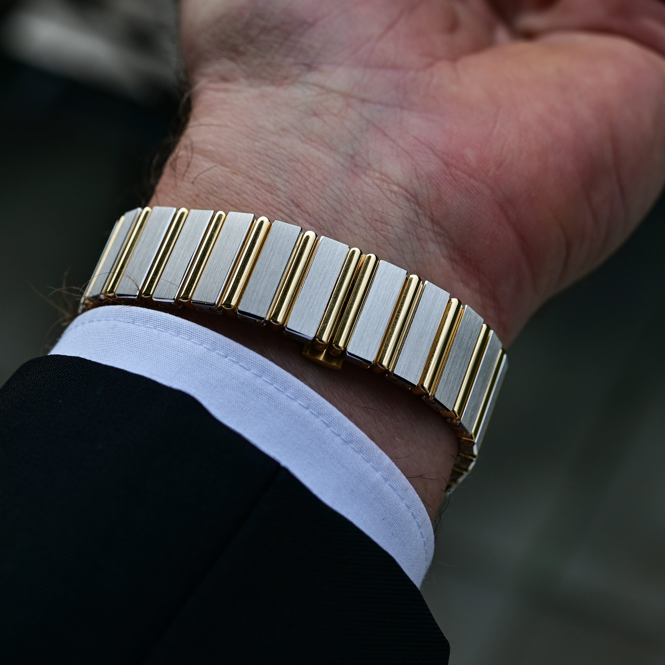 Nicely integrated into the case, the bracelet of the Polo 79 Two-Tone looks exactly what you expect: brushed white gold links separated by polished yellow gold inter-links, for a seamless transition between case and bracelet. Closed by a yellow gold triple-fold clasp (still not micro-adjustable or interchangeable…), it is a modern construction with screws to assemble/disassemble the bracelet on the inner side.