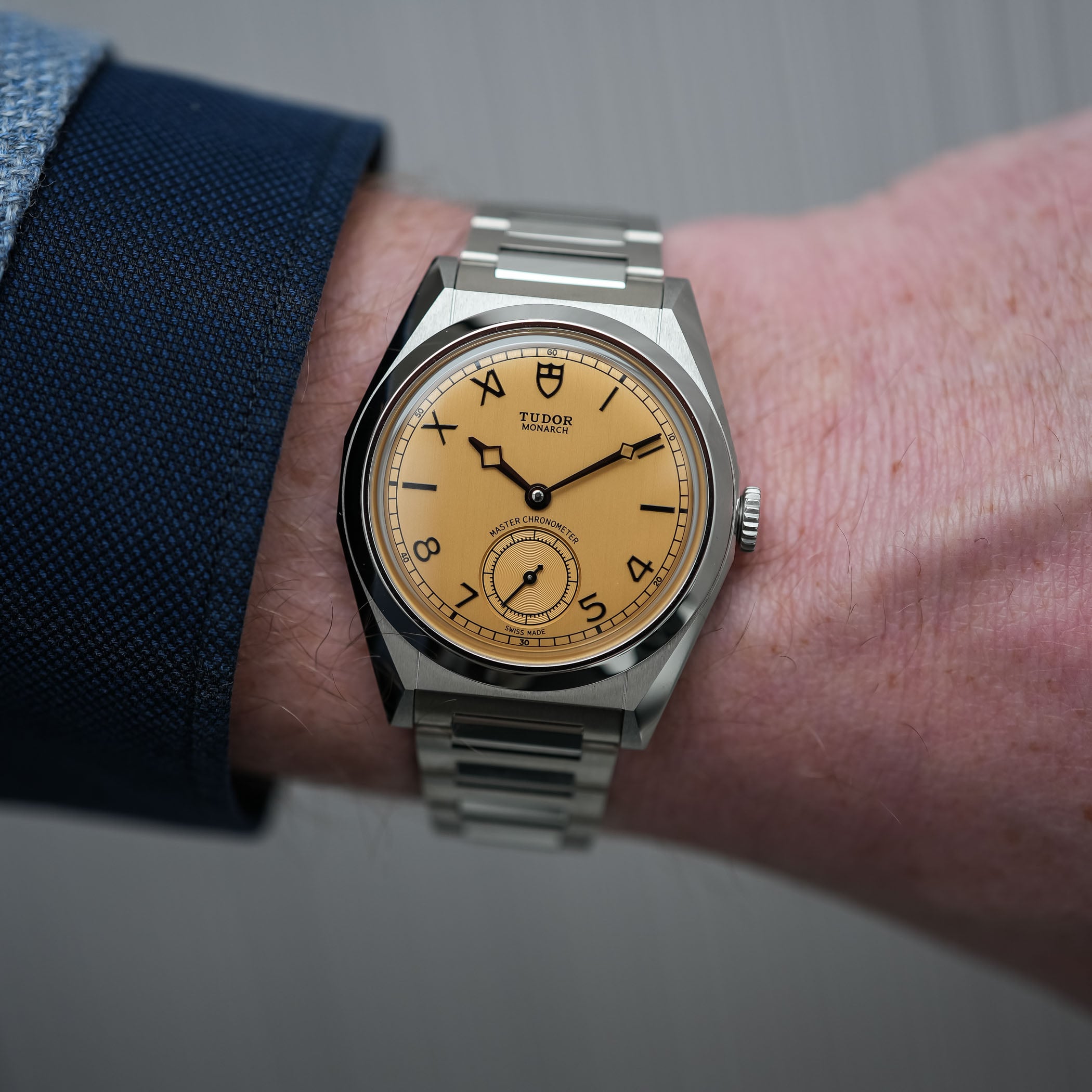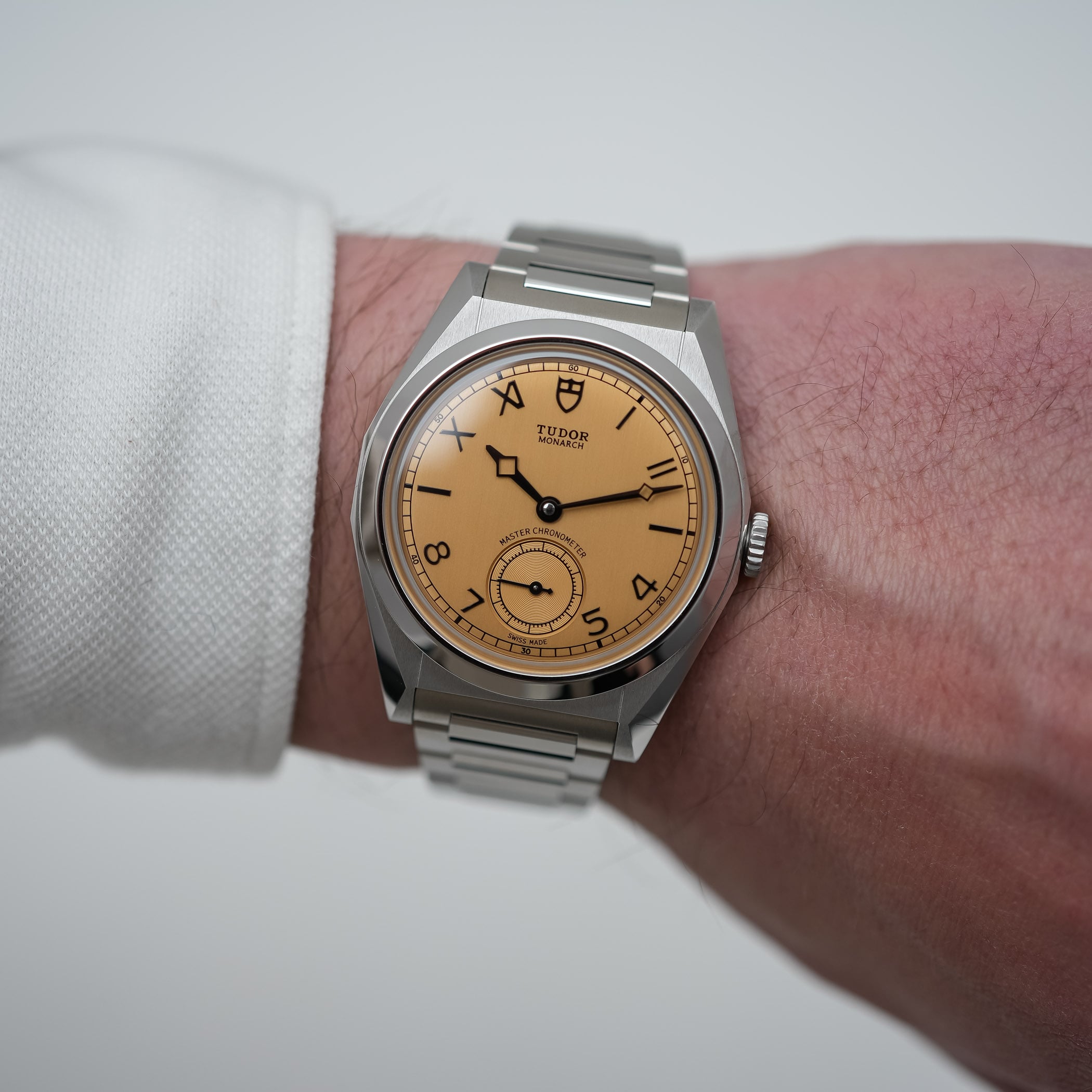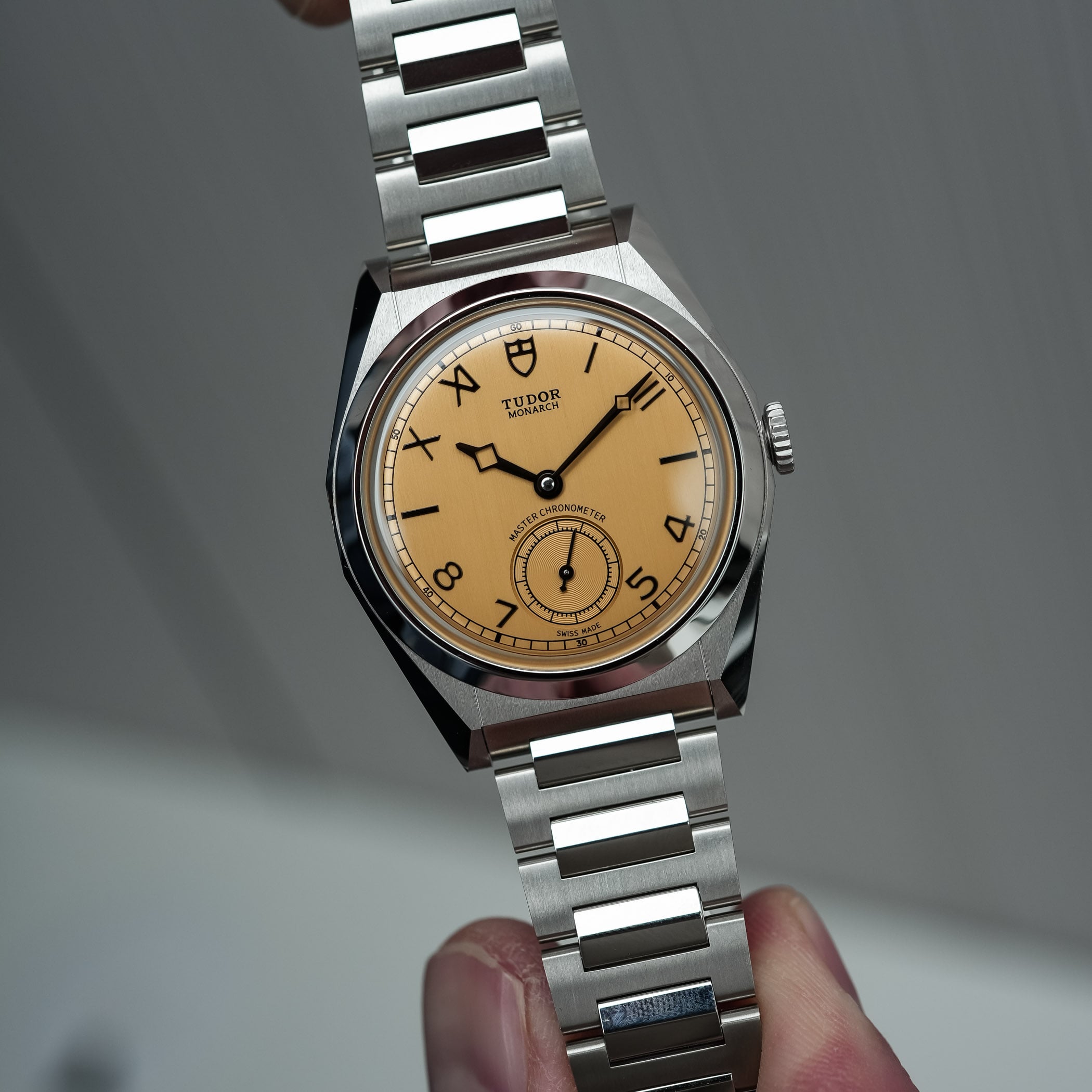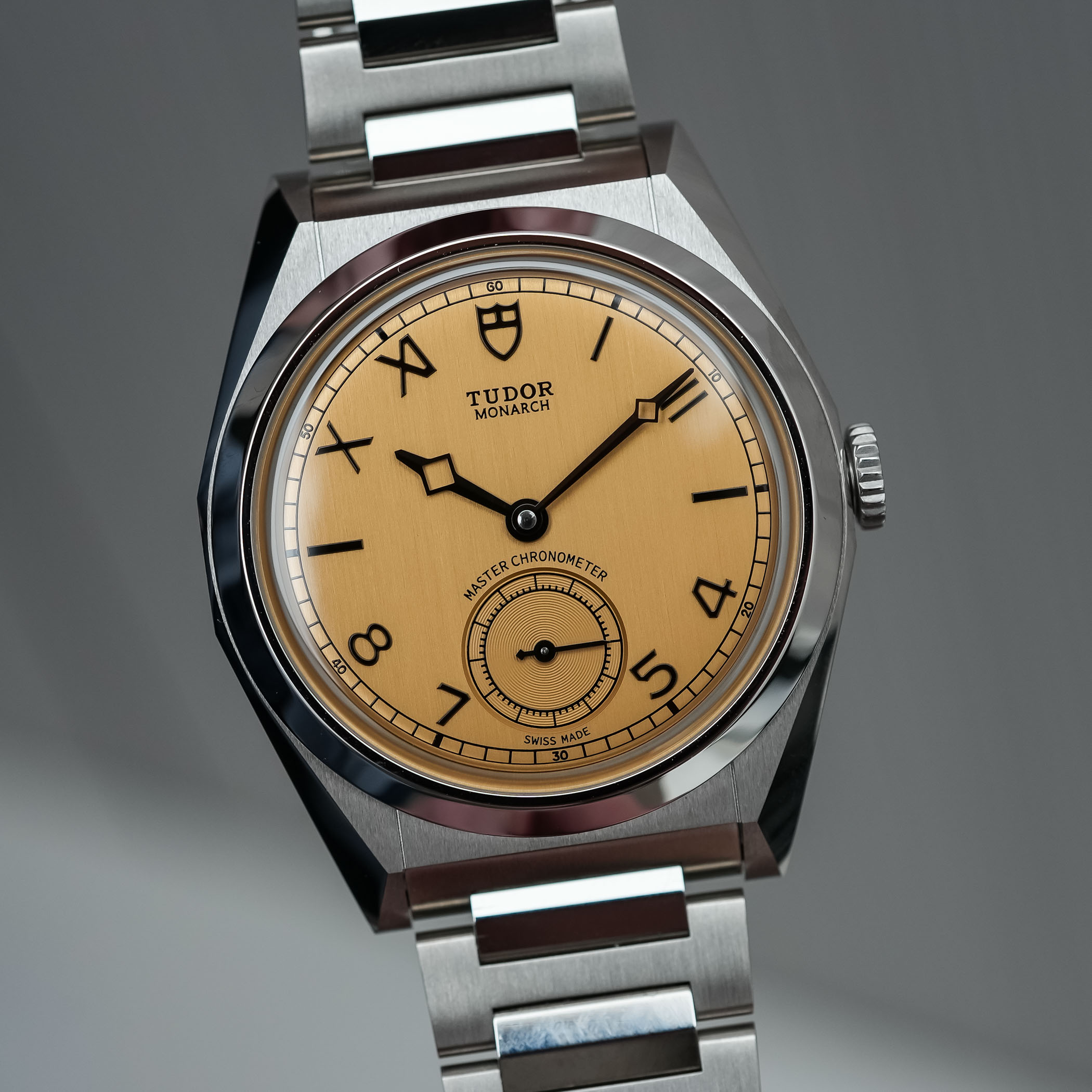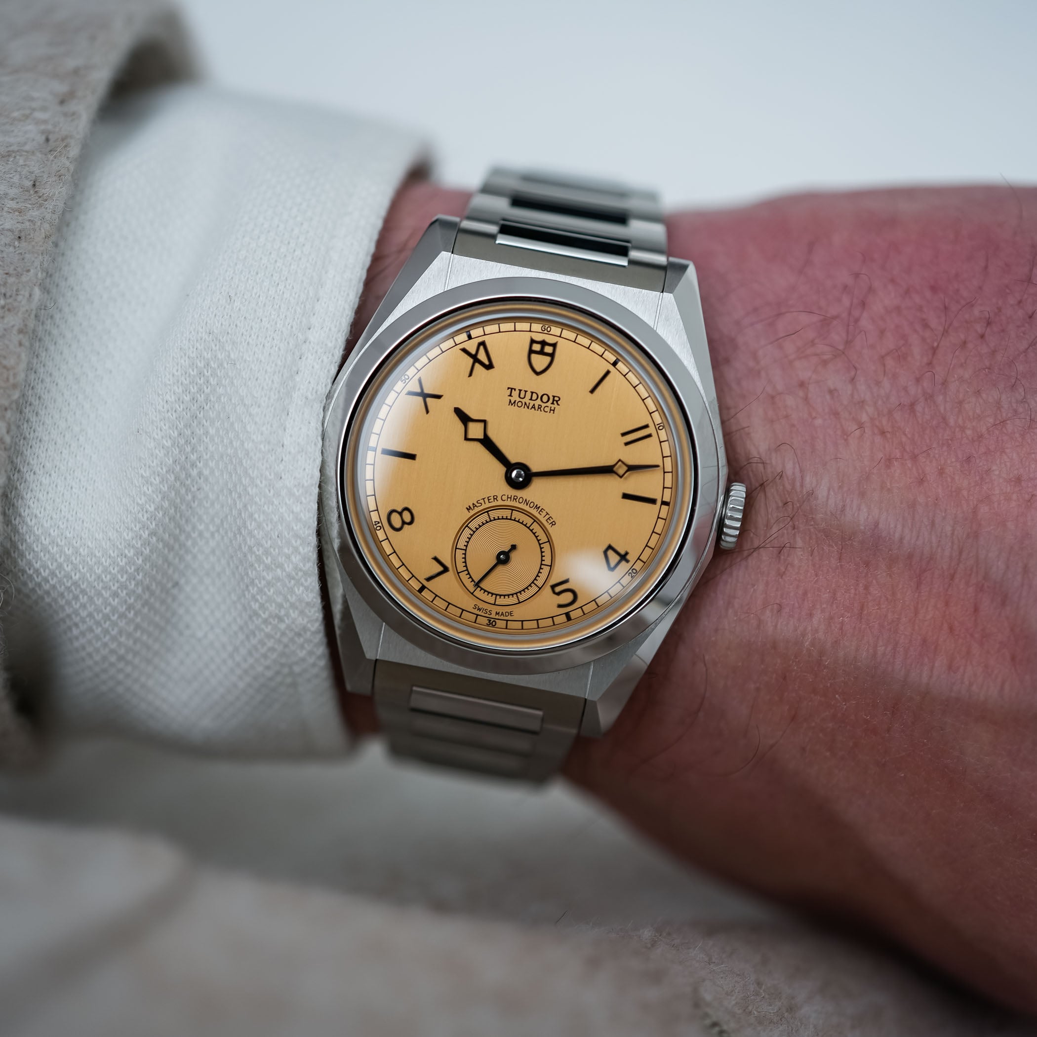 The dial of the Tudor Monarch was quite a surprise, in all fairness. I can imagine that it isn’t to everyone’s liking, but credit where due, it has a certain audacity while maintaining a reassuringly classic feel – and even a bit of the indie vibe we see in a much higher category. The colour of this dial is defined by Tudor as dark champagne, and it is paired with a vertically-brushed finish that gives it an old-school “papyrus” touch. It is quite a bold choice for the launch of this new collection, but the result is distinctive and particularly attractive – at least, within the MONOCHROME team, it got an almost unanimous positive reaction. There’s something unexpectedly traditional and horological in this colour, which isn’t what Tudor used to do in the past 15 years.