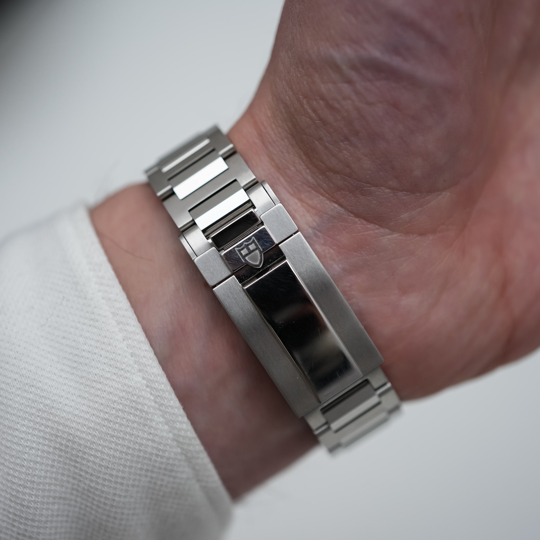 Last, the Tudor Monarch comes equipped with a newly-developed bracelet. It is built around brushed H-shaped links, paired with faceted, polished central links. The watch is secured to the wrist thanks to the brand’s classic folding clasp, with a safety latch and the practical T-Fit system, allowing micro-adjustments up to 8mm on 5 positions without tools.