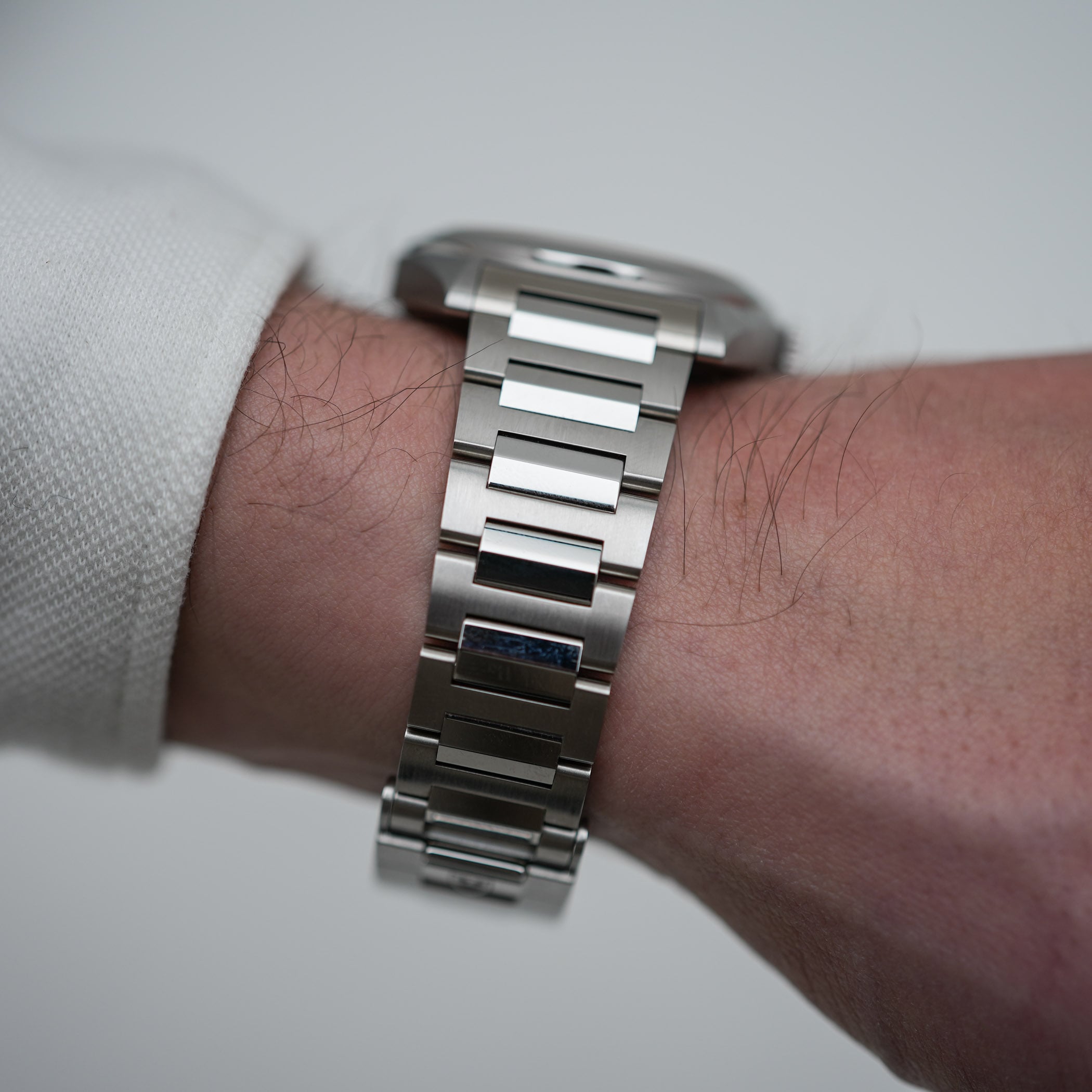 Let’s start with the design of the Monarch. At a glance, you could see something “luxury sports watch” with an integrated bracelet here. Indeed, there are some traits of the category here, starting with the actual shape of the case, with its sharp, faceted barrel-shaped middle-part and no actual lugs. The Monarch is built around an octagonal idea, but doesn’t have everything an integrated sports watch normally has. For starters, the bracelet isn’t designed as a continuation of the sides of the case, and yet it isn’t connected to the case traditionally. There are some inter-lugs elements, which add consistency to the design. The back, however, reveals a more classic construction that would make it fairly easy to swap for a leather or rubber strap.