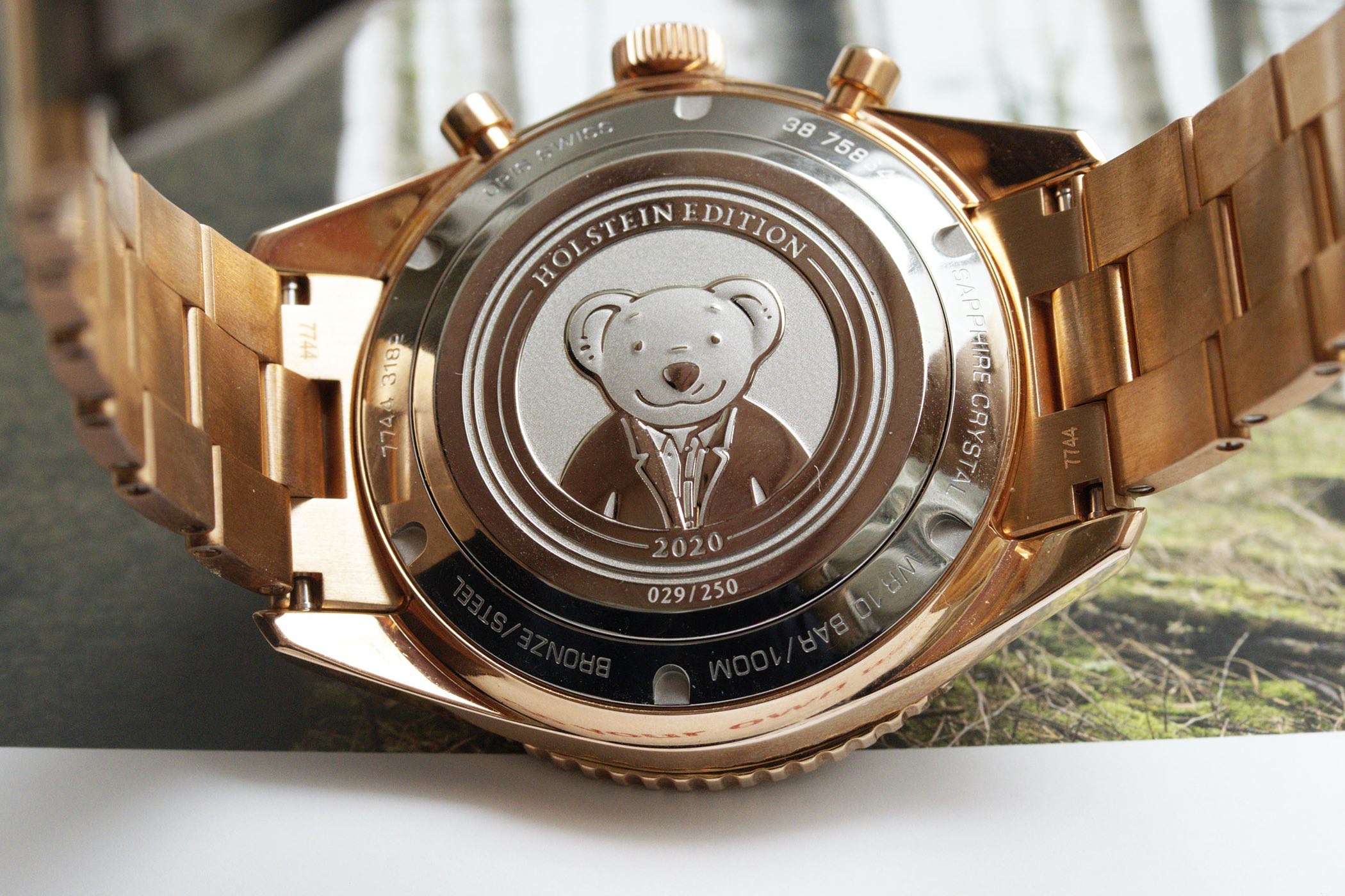 Designed to pay tribute to Holstein, the village where Oris was founded in 1904, this limited edition watch was one of the cool releases of the past week. If Oris has crafted numerous bronze watches in the past, this one stands out for featuring a solid bronze bracelet! And that’s pretty cool. This 43mm chronograph with vintage flair is powered by the Oris cal. 771, based on Sellita SW 510. It is released in a limited edition of 250 pieces. Last, the steel caseback is engraved with a smiling Oris Teddy bear.