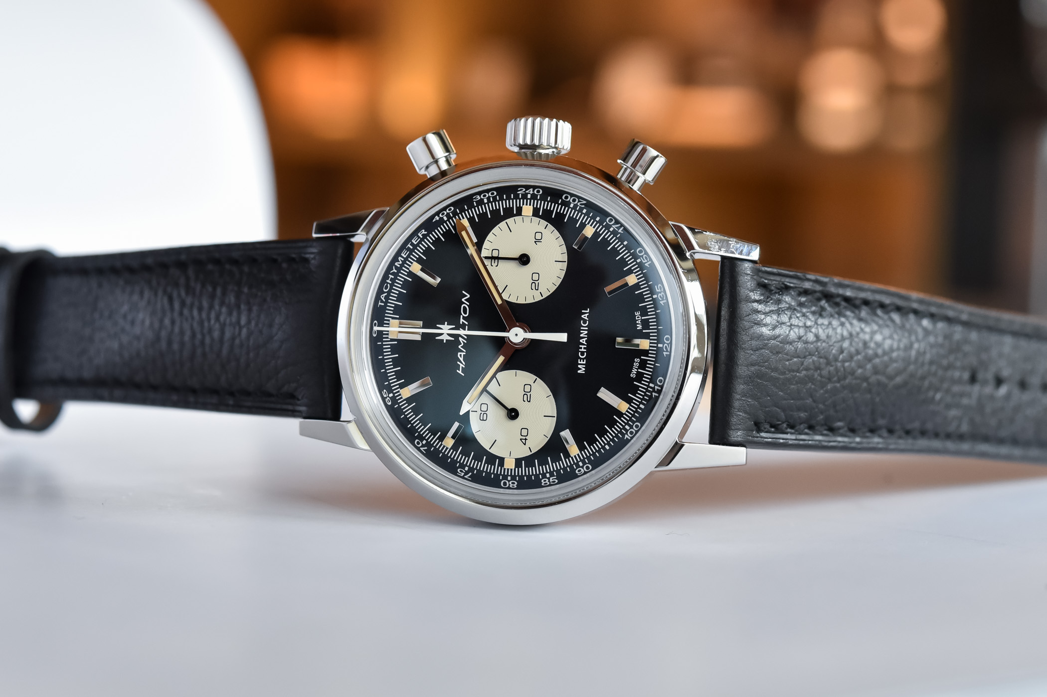 Quick facts – 40mm steel case – Calibre H-51 – hand-wound chronograph based on the 7753 architecture, specifically developed for Hamilton – from EUR 1,895