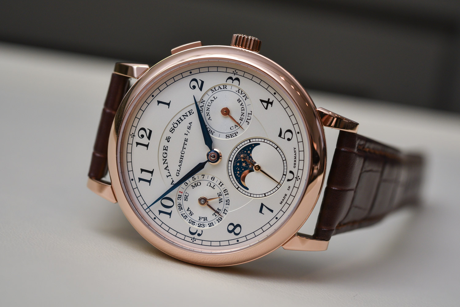 Quick facts: 40.00 mm gold case – hand-wound in-house L051.3 movement with hours, minutes, small seconds, annual calendar and moon phase indication. Alligator strap with pin buckle – EUR 37,500. For more information, visit www.alange-soehne.com.