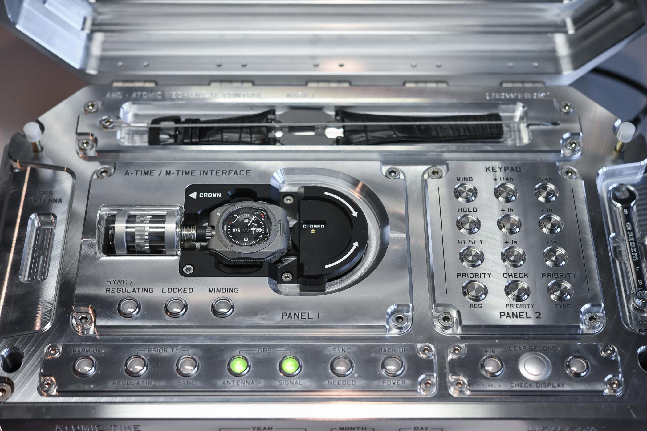 Quick facts: AMC watch: mechanical in-house movement, 4Hz frequency and 80h power reserve – seconds, minutes, hours, years – balance rate adjustment and synchronisation of minutes and seconds – Mother clock: YIG (yttrium iron garnet) and rubidium atomic clock – aluminum case, with cradle for watch – Indications: thousandth seconds; seconds, minutes, hours, day, month, year – Functions: manual winding of the AMC wristwatch, GPS synchronisation, setting time zones, setting leap second (+/-one-second adjustment), reset – For more information, visit www.urwerk.com.