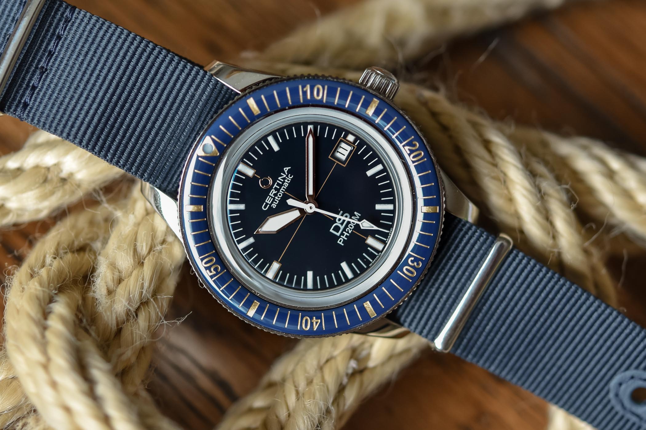 Quick facts: 42.8mm steel case – Unidirectional bezel with ceramic insert – calibre 80.611 with 80h power reserve – automatic – 200m water-resistant – Nato strap on pin buckle – CHF 880 – www.certina.com
