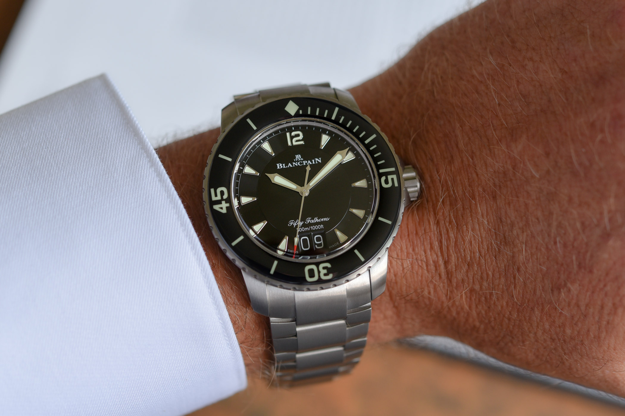 Quick facts: 45mm titanium case – unidirectional bezel with sapphire insert – Blancpain calibre 6918B, in-house – automatic – 300m water-resistant – titanium bracelet – CHF 18,800 – www.blancpain.com
