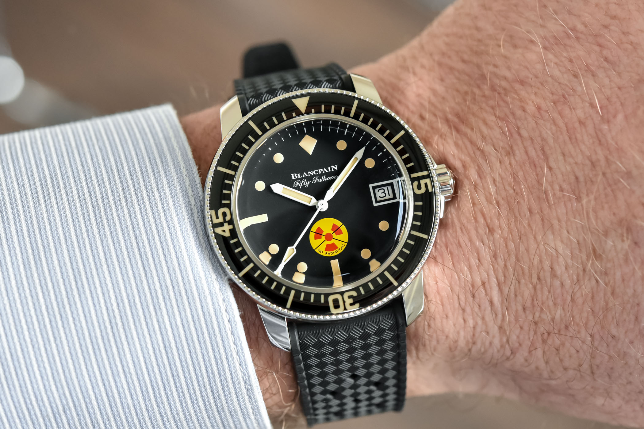 Being one of the earliest dive watches ever created, back in 1953, the Fifty Fathoms is sort of a usual suspect when talking about luxury divers. And while you have many options in the regular collection, the brand recently introduced a stunning limited edition piece, the No Rad. Standing for no radiations, the name should resonate with those who know their history. Indeed, Blancpain was a supplier to the navies of numerous armed forces worldwide, with a military Fifty Fathoms delivered to the Bundeswehr, the iconic and rare “BUND No Rad.” The second reissue of this model (the first was in 2010), this new 500-piece edition ticks many boxes. First, it is compact, at 40.3mm in diameter, and features the signature sapphire bezel with full graduation. Second, its dial is matte black, with tool-ish markers, and features the cool ‘no radiations’ logo at 6 o’clock. Finally, it is powered by a high-end in-house movement with a comfortable power reserve. All in all, a very convincing vintage-inspired model. More details in our in-depth article here.