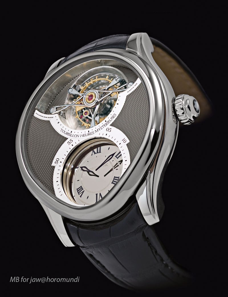 I just really like the dial, the case and the tourbillon case…. and not to forget the “Heures Mysterieuses”. The hands are painted on two layers of crystal so they appear to be floating in the air.