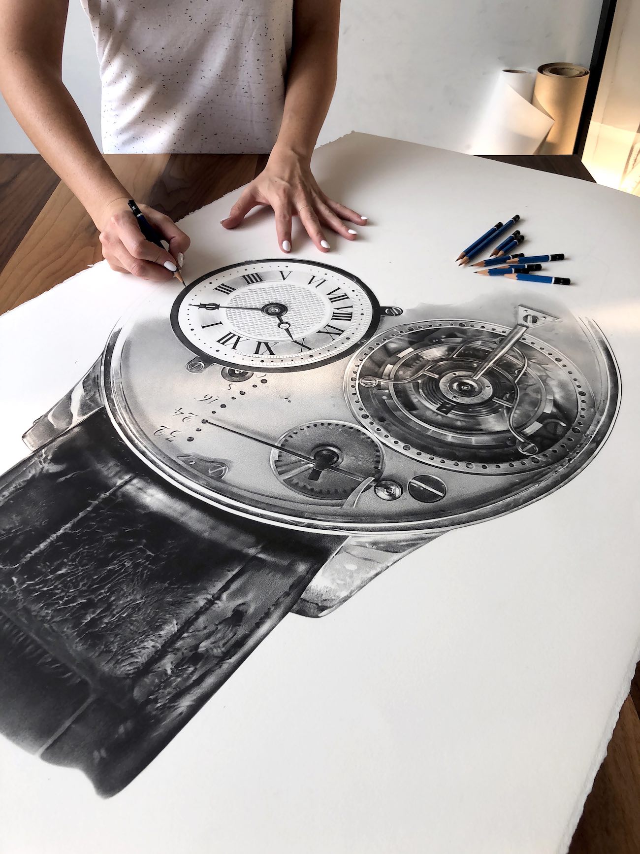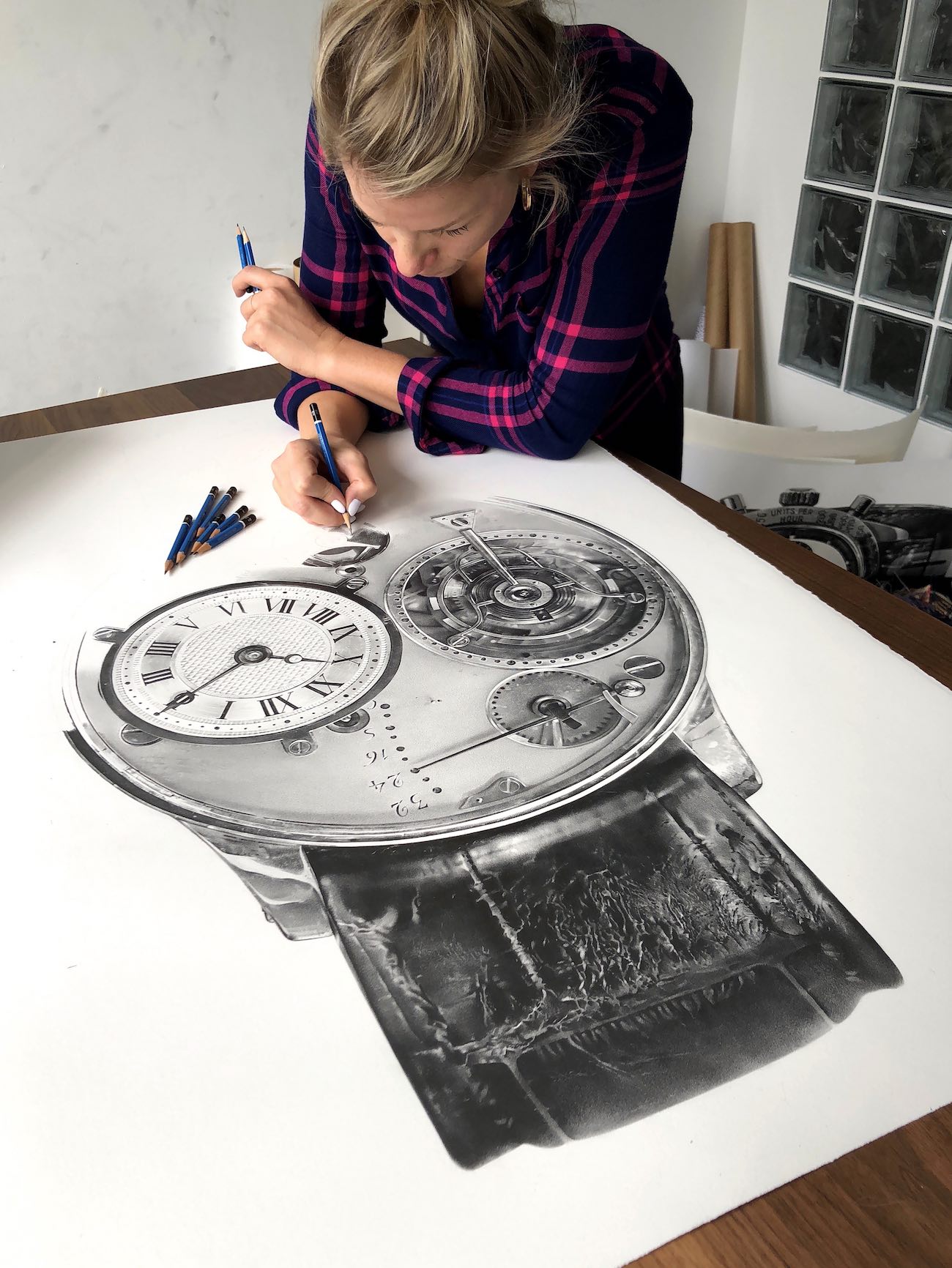 Julie Kraulis, based in Toronto, Canada, is a well-know artist – her work can be seen on her Instagram page here – in the watch community, renowned for her collection of graphite drawings devoted to watches. Through her ‘horological portraits’ painted with pencils, Julie recreates the intricate details of iconic timepieces with an insane level of precision.