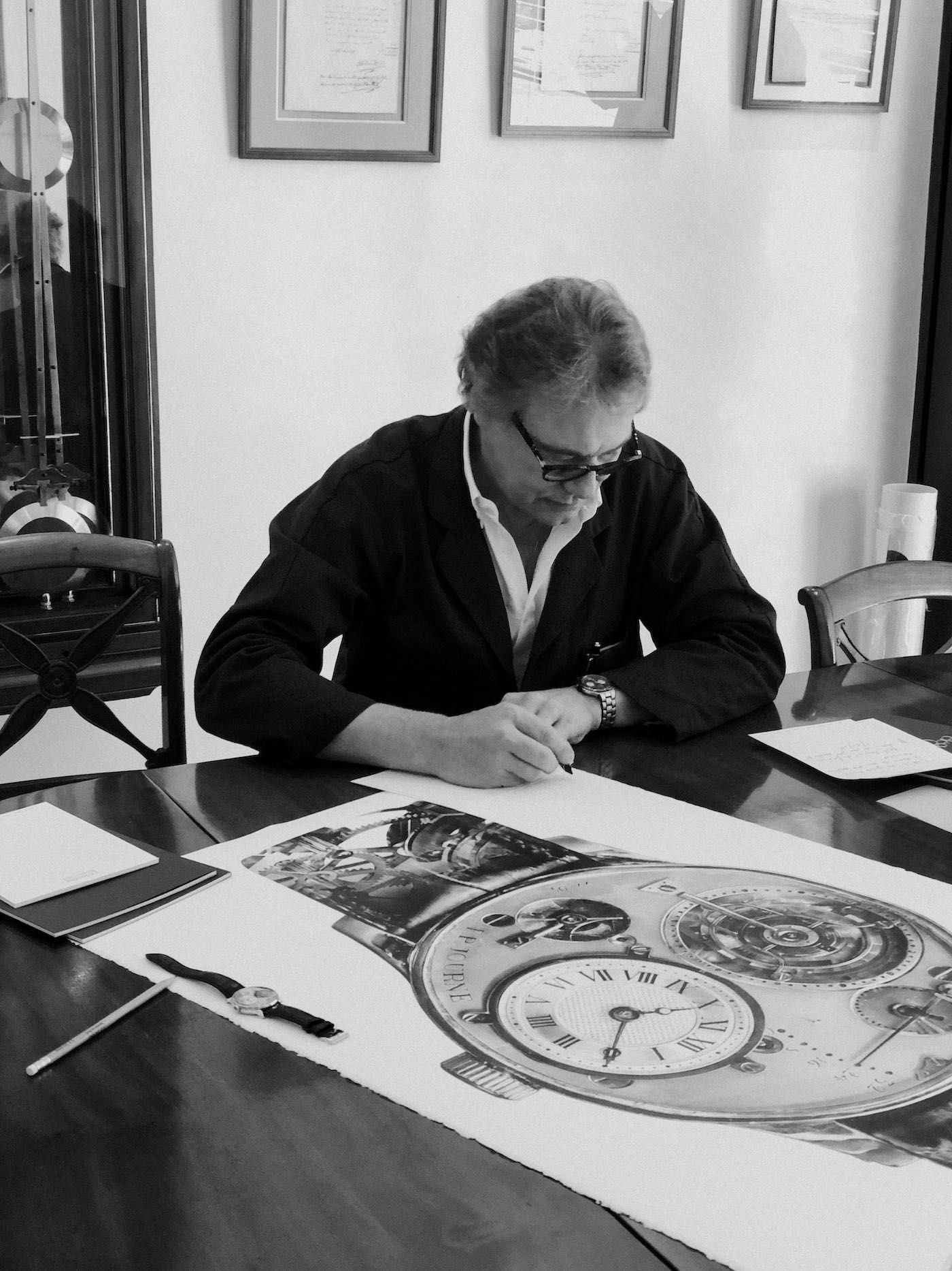 Taking over three hundred hours to complete using graphite pencil only, the drawing is inscribed and signed by Journe himself, who left a small message at the bottom of it (with the illustration measuring about 25.75″ by 40″).
