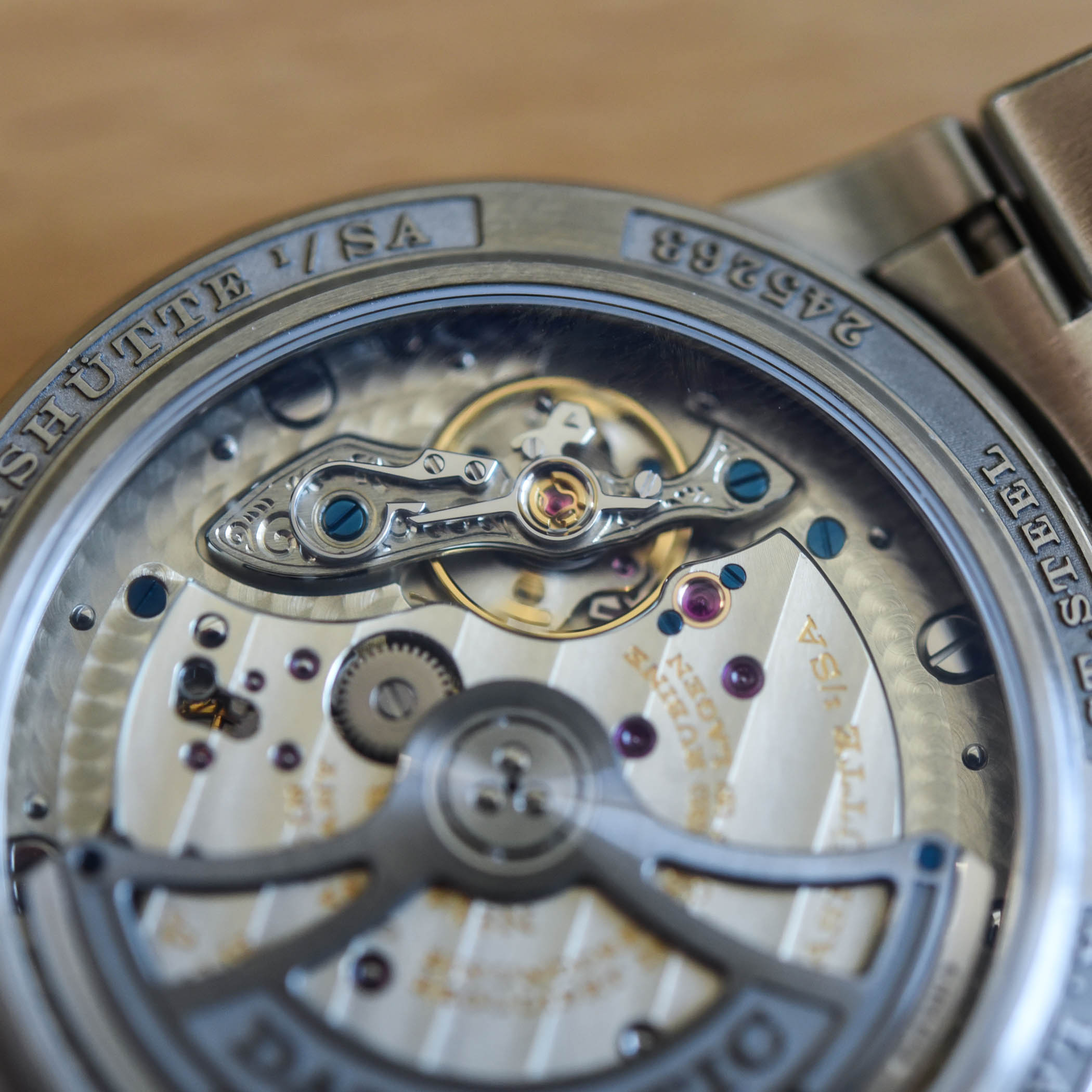 Considering this sportier context, Lange opted for a new and more robust movement. At the expense of repeating myself, we’re not in an ultra-thin luxury sports watch context here and using one of Lange’s existing thin movements, to me, wouldn’t be coherent. The choice of a larger, more solid and slightly thicker movement does make sense here. And so does the central rotor and not an off-centred 3/4 oscillating weight or a micro-rotor.