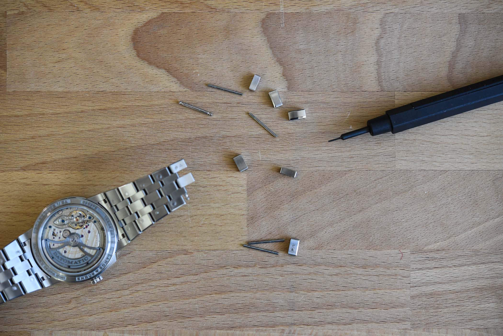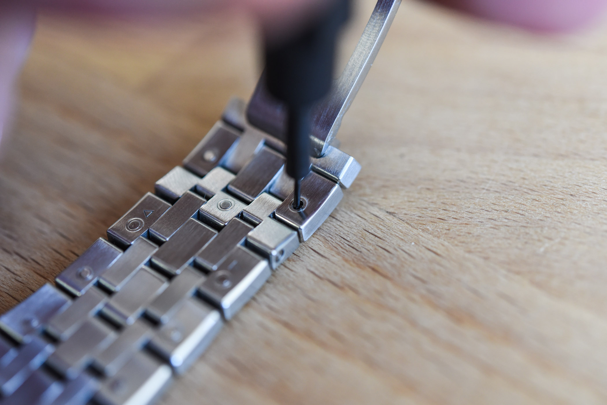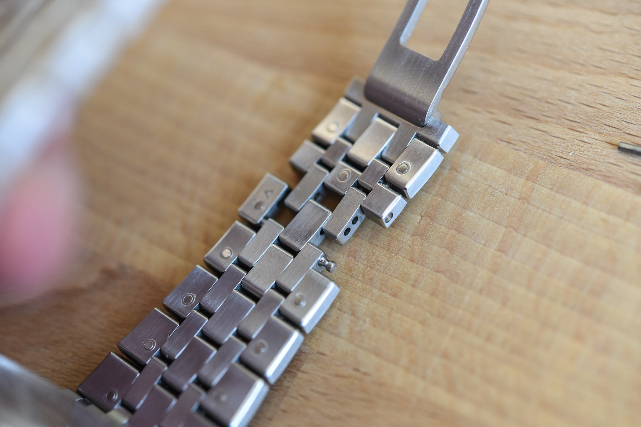 Thanks to the sequence above, you can see the bracelet’s last feature: a self-adjusting system for the initial sizing of the length. Thanks to small recessed pushers on the outer links, and to the tool that is provided by Lange in the box, you can adjust the bracelet to your wrist without having to visit an authorized dealer or a boutique. Certainly, this might seem like quite a complex puzzle at first, but once you’ve digested the user manual, it is pretty easy to do.