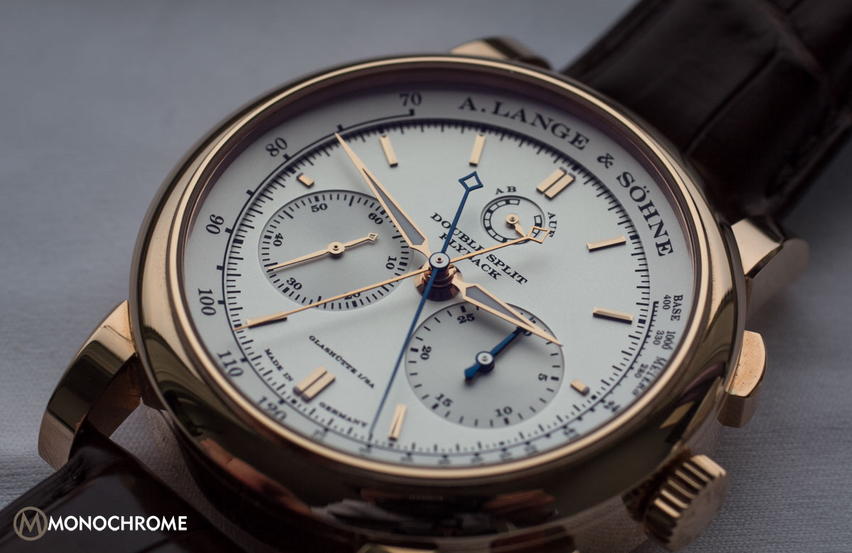 If rattrapante or split-second chronographs traditionally allow to measure split-times up to 1 minute, a major enhancement to this classic complication was brought by A. Lange & Söhne in 2004. The Double-Split features rattrapante seconds and minutes that can be stopped independently and later re-synchronised again. Presented in 2018, the Triple-Split goes one step further with the addition of a third, separately stoppable hand pair for measurements that last up to 12 hours. In short, a split-seconds-minutes-and-hours chronograph.