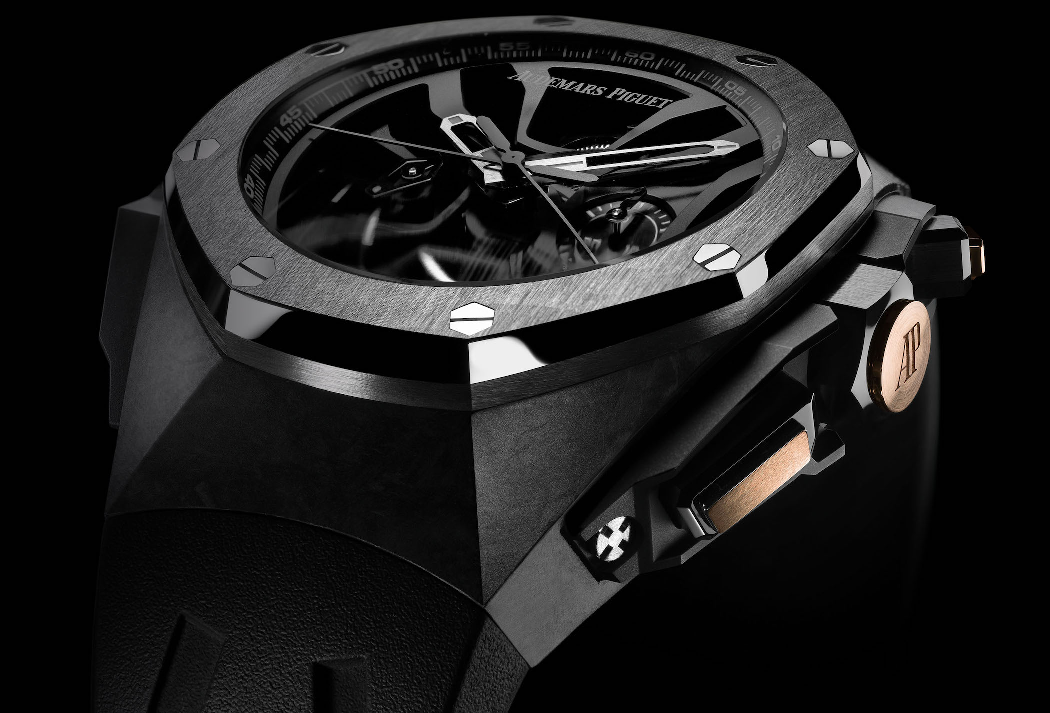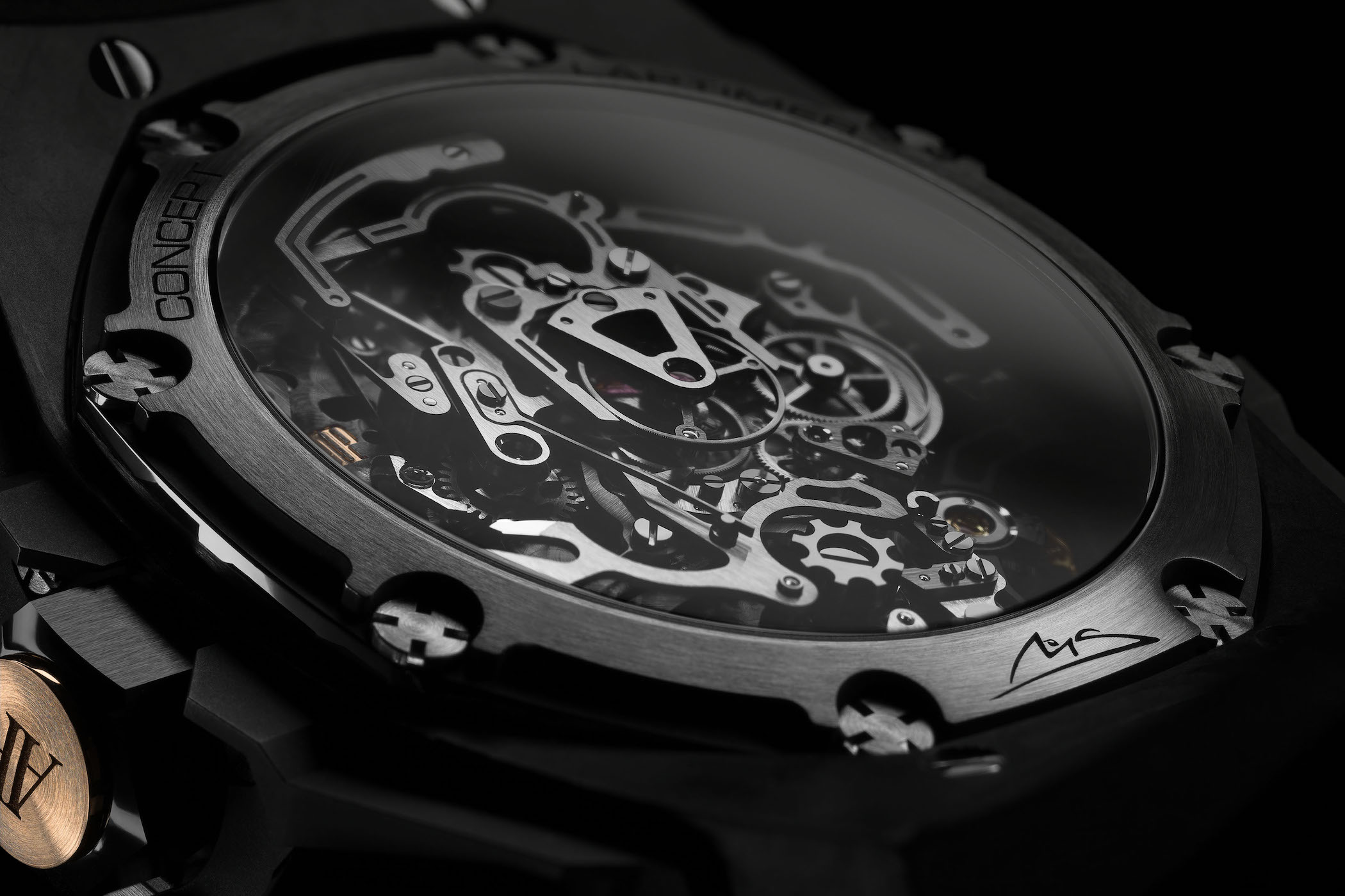 When it comes to racing, timekeeping is key and watch brands have developed countless racing chronographs. Traditionally lap times are timed from the trackside using one or more chronographs (or using electronics). The Audemars Piguet Royal Oak Concept Laptimer features a single chronograph driving two central hands which can be controlled independently via three push-pieces – the first sited at the conventional two o’clock position to start and stop the chronograph; the second sited at the four o’clock position to reset the chronograph, and the all-important third push-piece sited at the nine o’clock position.
