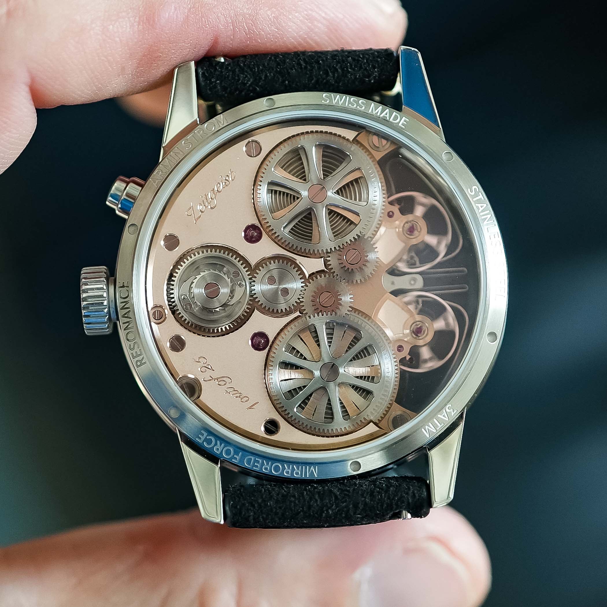 The back-and-forth swing of the balance creates the specific oscillation frequency of the movement – 28,800vph (4Hz) or 21,600vph (3Hz) and so on. Hz (hertz) defines how many times a full back and forth swing of the balance happens per second. Vph (vibrations per hour) measures one swing at a time, so 28,800vph is actually 14,400 full oscillations, as the tick and tock are both counted.