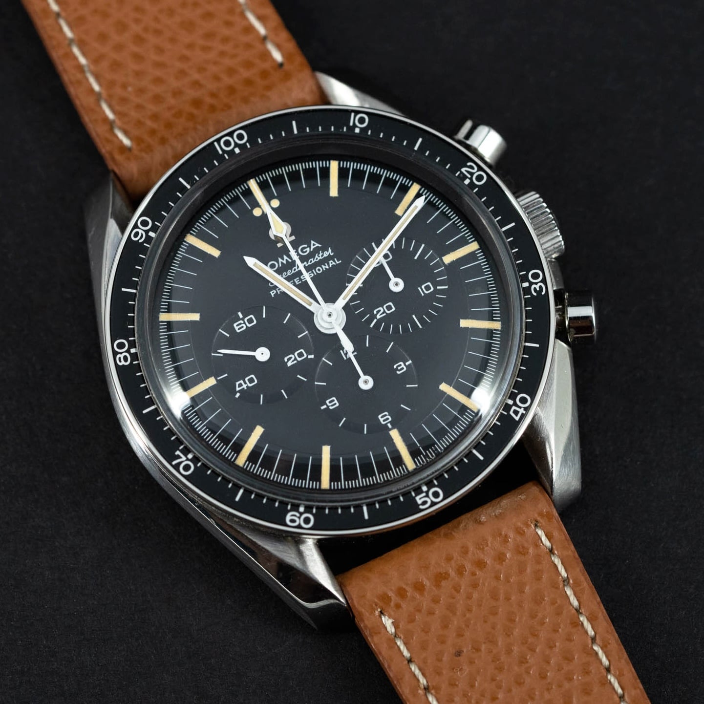 A tachymeter scale is used to measure speed when the distance is known or to track the frequency of a recurring event. For the most part, these are found on chronograph watches, which use the central chronograph seconds hand to start measuring a distance (most common use) or an event. At the end of the distance (using two specific landmarks at the start and finish), you stop the chronograph’s seconds hand, and it will point to the speed on the tachymeter scale. This can be done with a three-hand watch with hacking seconds as well, but is most practical coupled with a chronograph. If you’re timing a car’s speed between two fixed points that are a mile apart and the car completes the distance in 60 seconds, the seconds hand will point to 60 on the tachymeter – the car was travelling at 60 miles per hour. Some tachymeters are printed directly on the dial’s perimeter, but many are engraved on an external bezel. A famous example of a watch with a tachymeter bezel is the Omega Speedmaster Moonwatch, as the inaugural version of 1957 was the first chronograph with a scale printed on an external bezel.