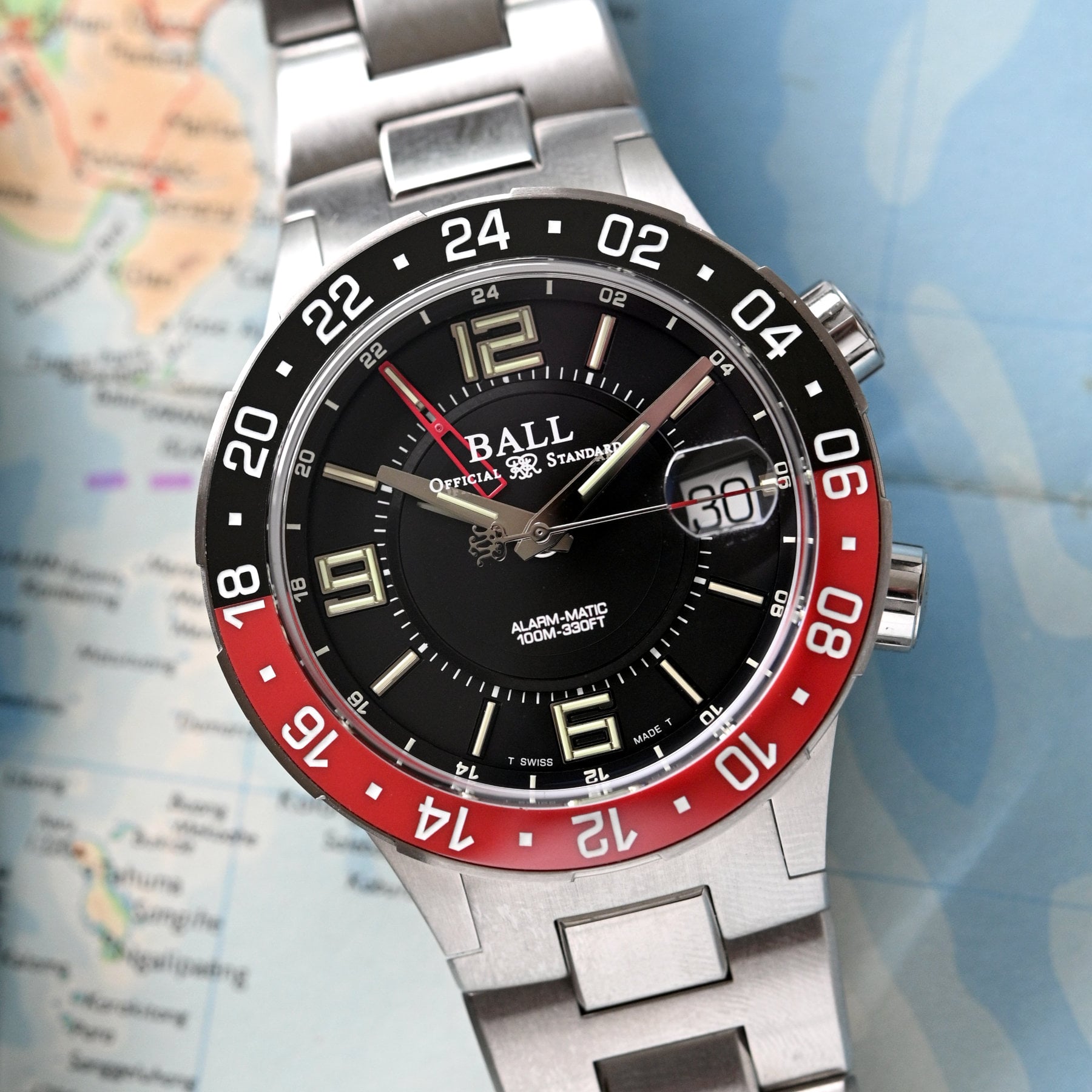 The Ball Roadmaster M Model A is a great example with tritium tube indices and Arabic numerals at 12, 6 and 9 o’clock formed by a series of tubes. Luminox (with “Luminox Light Technology”), Traser (with “Trigalight”), Marathon and many other brands also use tritium tubes on certain models instead of Super-LumiNova. Tritium tubes remain popular with the military as well for the same reason as radium a century ago – a consistent glow without the need for a charge by external light.