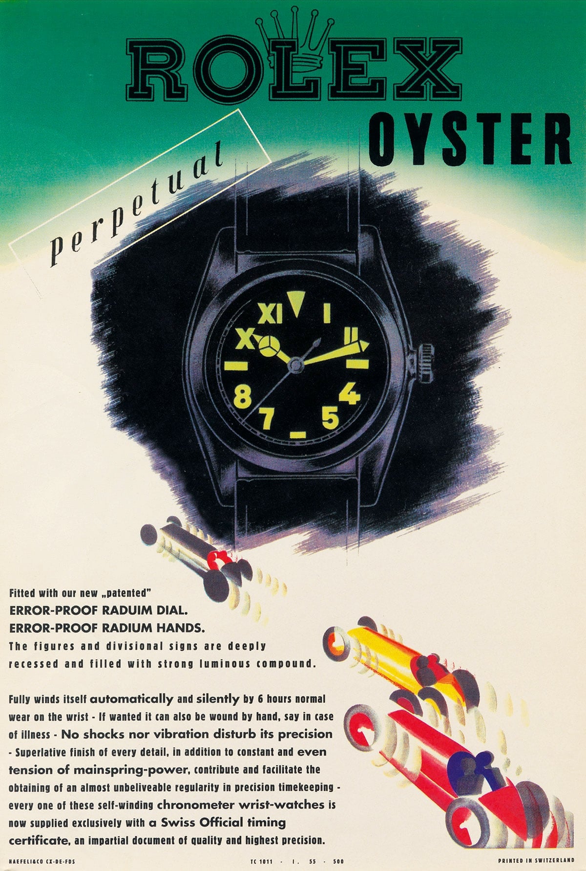 It wasn’t until 1993 that LumiNova was created with an improved formula, and the company soon received a patent. LumiNova was based on strontium aluminate that glowed after absorbing external light (unlike tritium that glowed indefinitely on its own), and watchmakers began using it in small numbers by late 1994. It didn’t become an industry standard until 1998, the same year Rolex switched from tritium to LumiNova (with the well-known Swiss-only models), and it’s a short-lived but very important bridge between tritium and today’s Super-LumiNova.