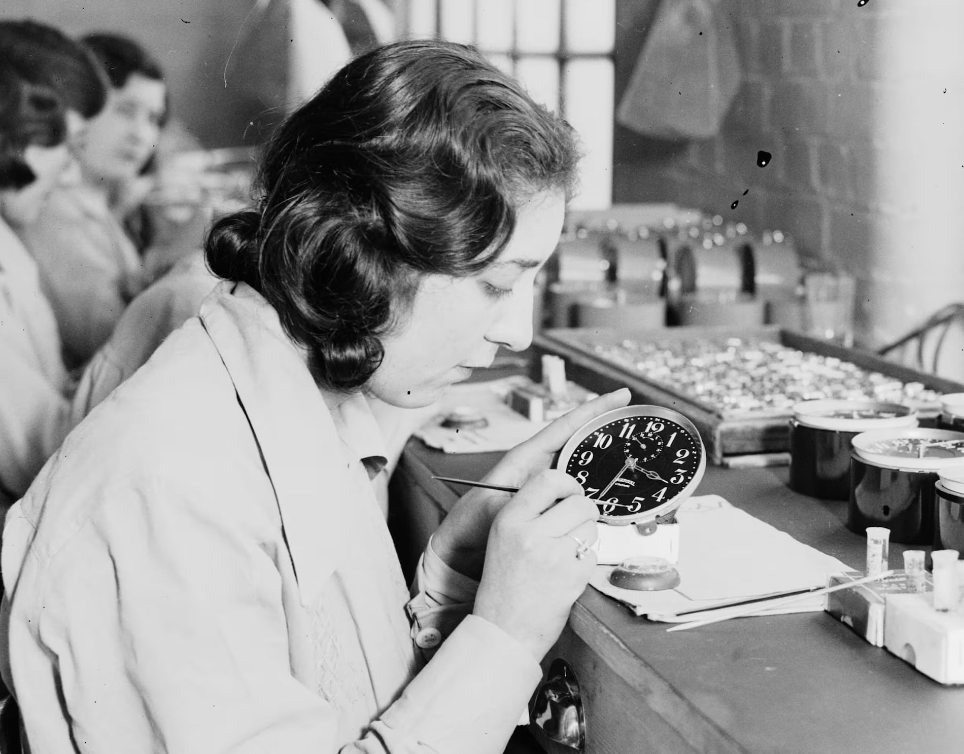Our understanding of radiation was limited at the time, particularly the dangers (although industry leaders had a clue – see below), and young women were hired in the 1910s to paint radium on watch and clock dials. It was believed that women, by nature, were more talented with the delicate and precise dial work. This soon became a “patriotic duty” as military trench watches were in high demand. For such precision, the brushes needed to have a fine point, so the women were instructed to use their tongue and lips to continuously maintain the bristles’ pointed shape. This exposed their mouths to highly radioactive material, which was also ingested in significant amounts over time. The body confused radium with calcium, so it accumulated in bones and caused necrosis or “radium jaw” – teeth fell out, jaws started to rot, bones fractured easily, and anaemia, cancer and death often followed. Industry leaders were quick to deny any relation between radium and the chronic illnesses, blaming anything and everything from X-rays to poor diets. The truth was more sinister as most understood the growing dangers, at least in part, and ignored them for profit and efficiency.