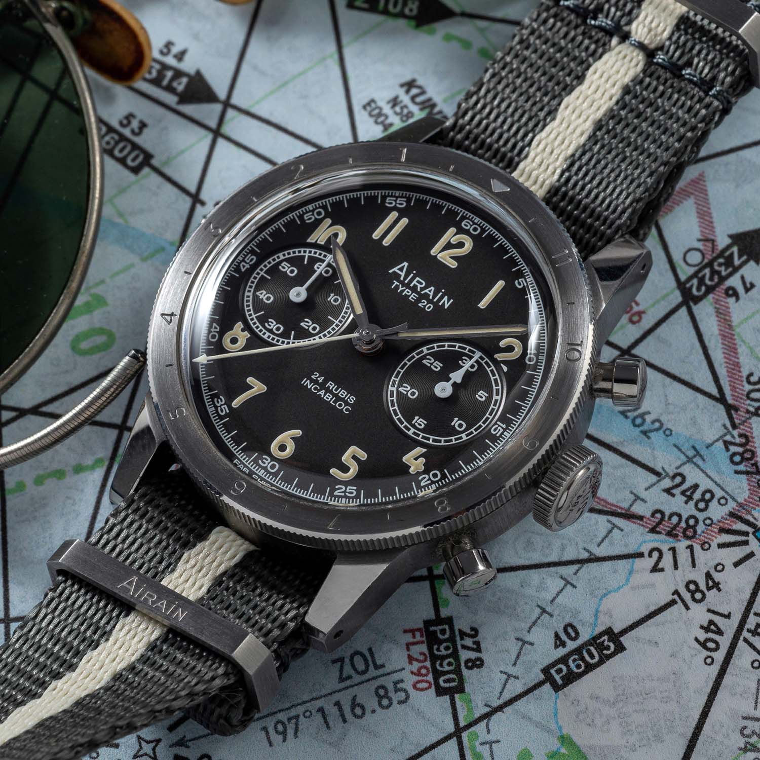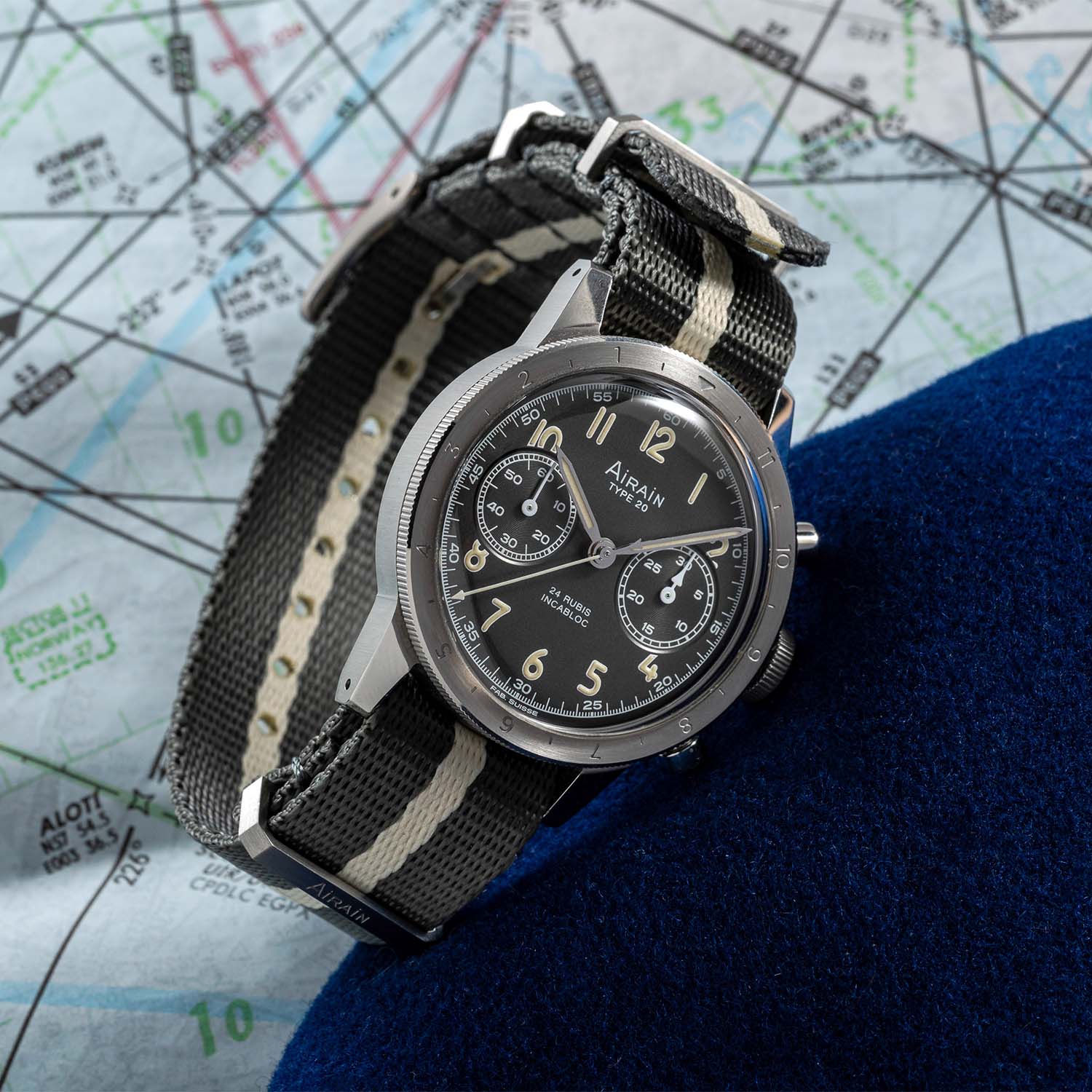 Looking at the existing revival models around, the Airain Type 20 Re-Edition is basically the closest you can get from the original 1950s watch. The Type 20, a military specification/code, is born from the wish of the French Ministry of Defence to equip members of the Air Force, the Centre d’Essai en Vol (the CEV) and the Aéronavale (naval aviation) with chronograph wristwatches. A pilot’s watch equipped with a flyback chronograph (the famous retour en vol function) the watch will be produced by numerous manufacturers; Breguet, Mathey Tissot, Chronofixe, Auricoste, Dodane, Vixa and Airain. For more details about the Type 20 specification, you can consult this in-depth article.