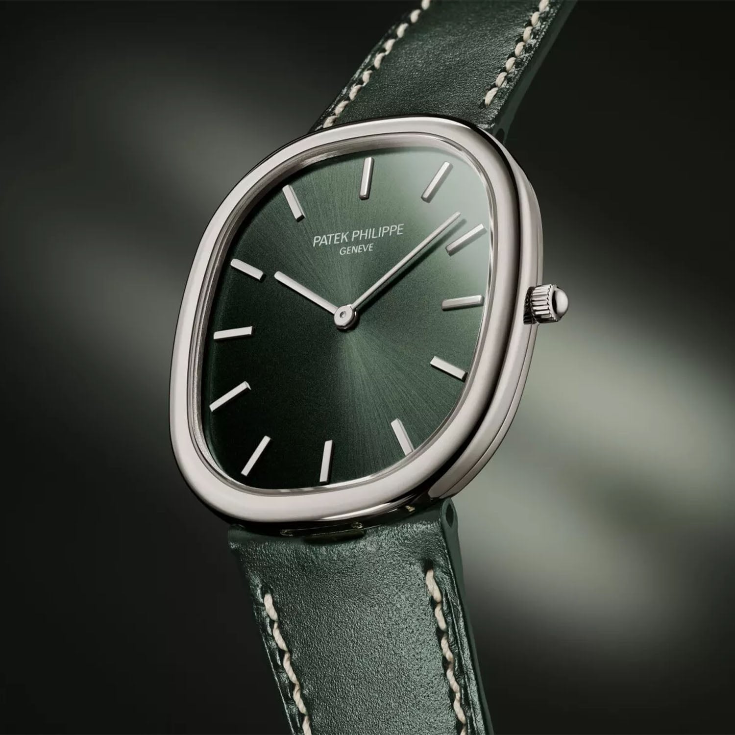 Watches and Wonders 2026 is also the occasion for Patek to unveil 2 new versions of the elegant Golden Ellipse in white gold with a sunburst Olive green dial and matching calfskin strap. This new “treatment” is offered for the larger (34.5mm x 39.5mm) version launched for the 40th anniversary of the legendary Golden Ellipse in 2008, and of the medium size (31.1mm x 35.6mm). Matching cufflinks are also available for a total look. The watches retail respectively for CHF 34,400 and CHF 32,400.