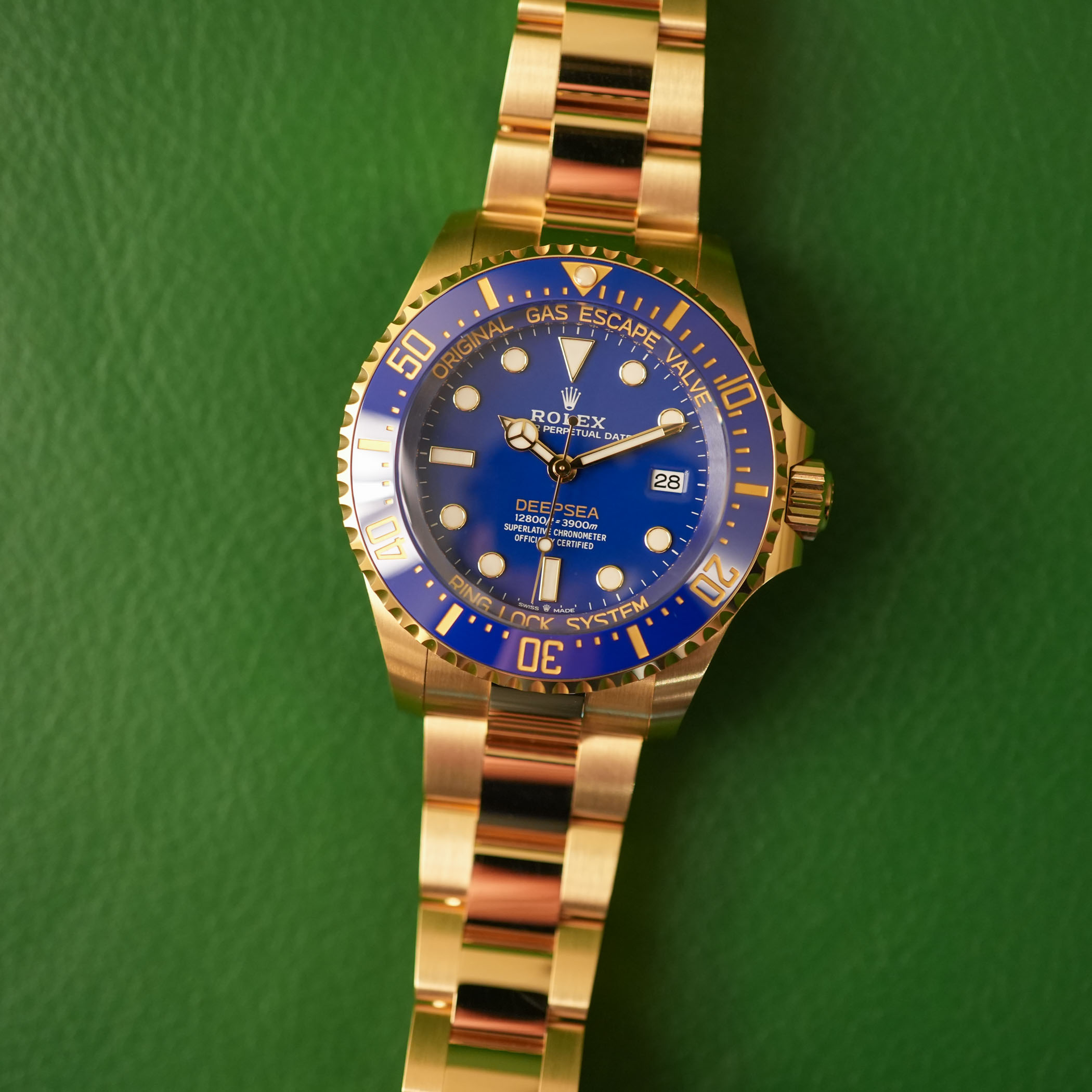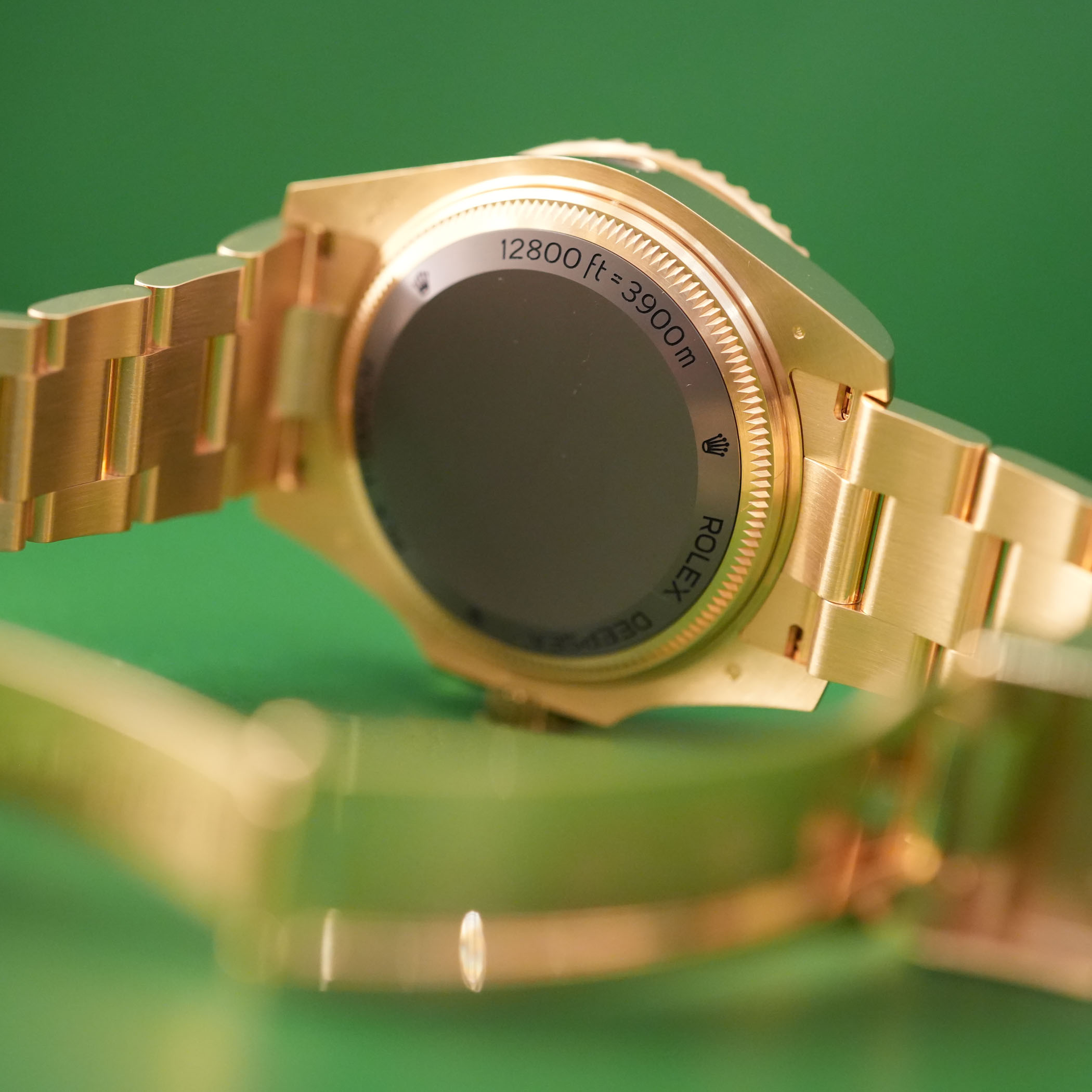 One of the most unexpected releases of this year, one of the most competent dive watches of Rolex, now in a luxurious full yellow gold attire – save for the caseback in titanium. It is equipped with a new blue dial and ceramic bezel.